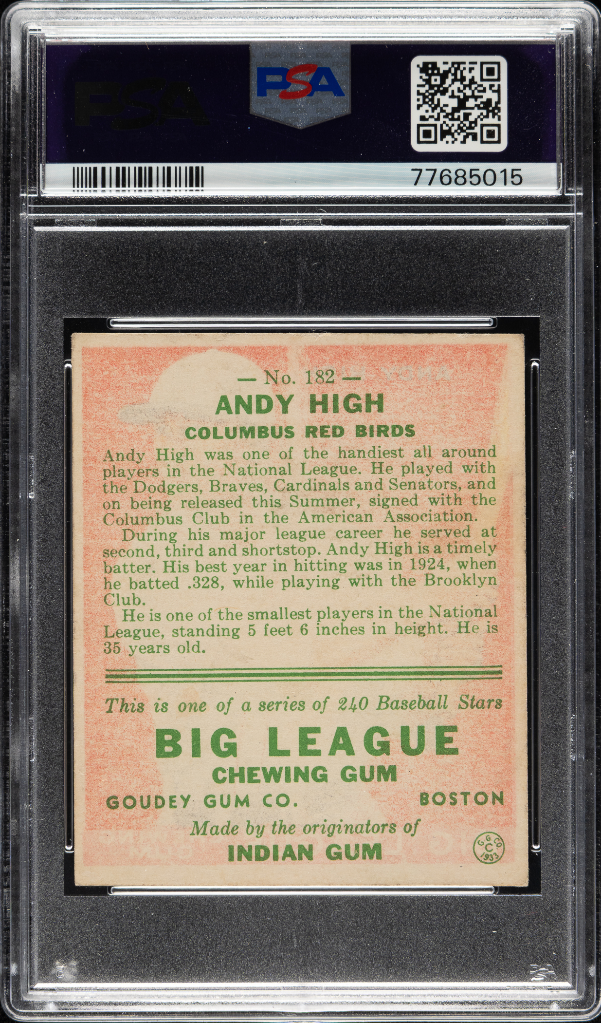 Graded VG-EX 4 by PSA. Columbus Red Birds.