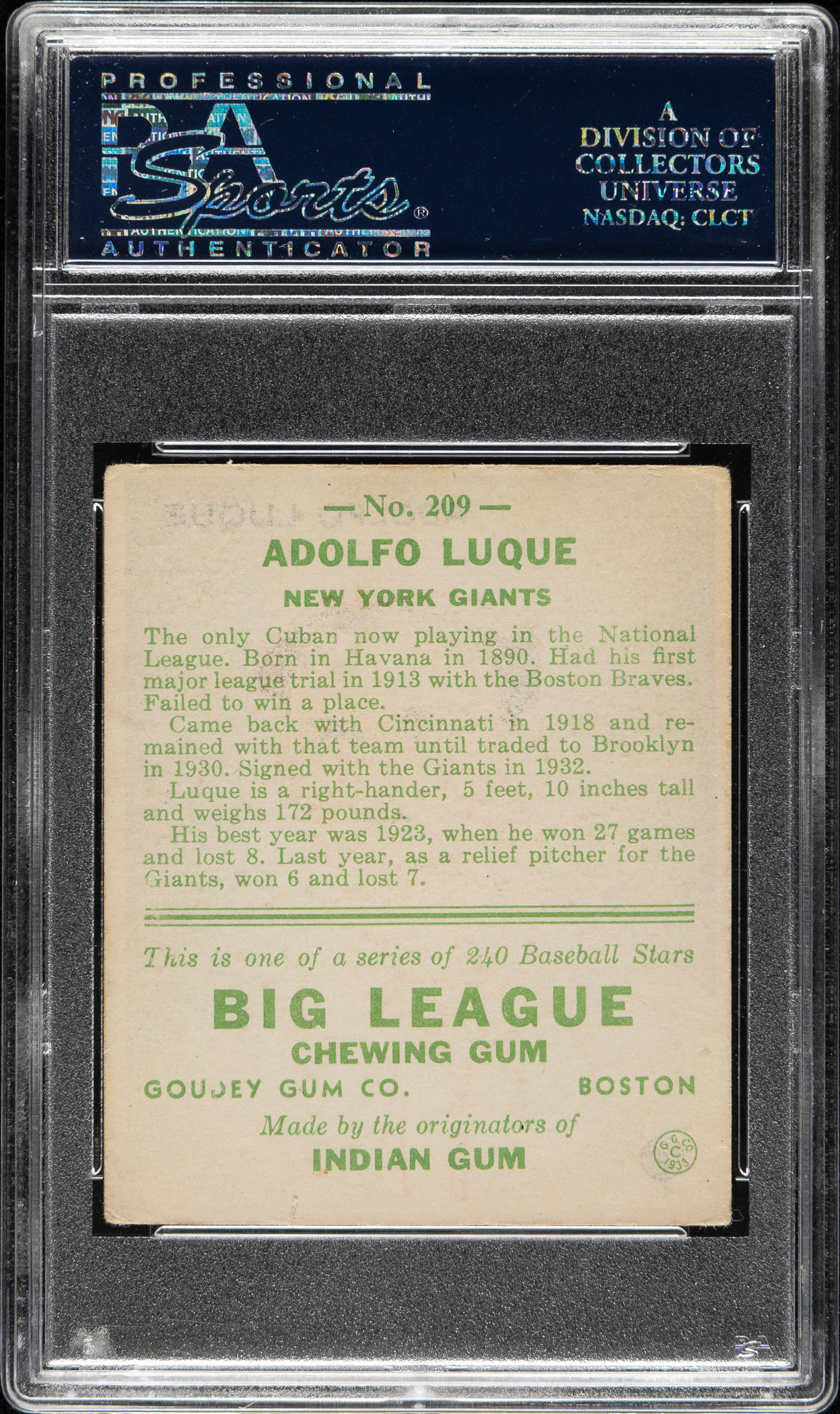 Lot # 1057: 1933 R319 Goudey #209 Adolfo Luque PSA VG-EX 4