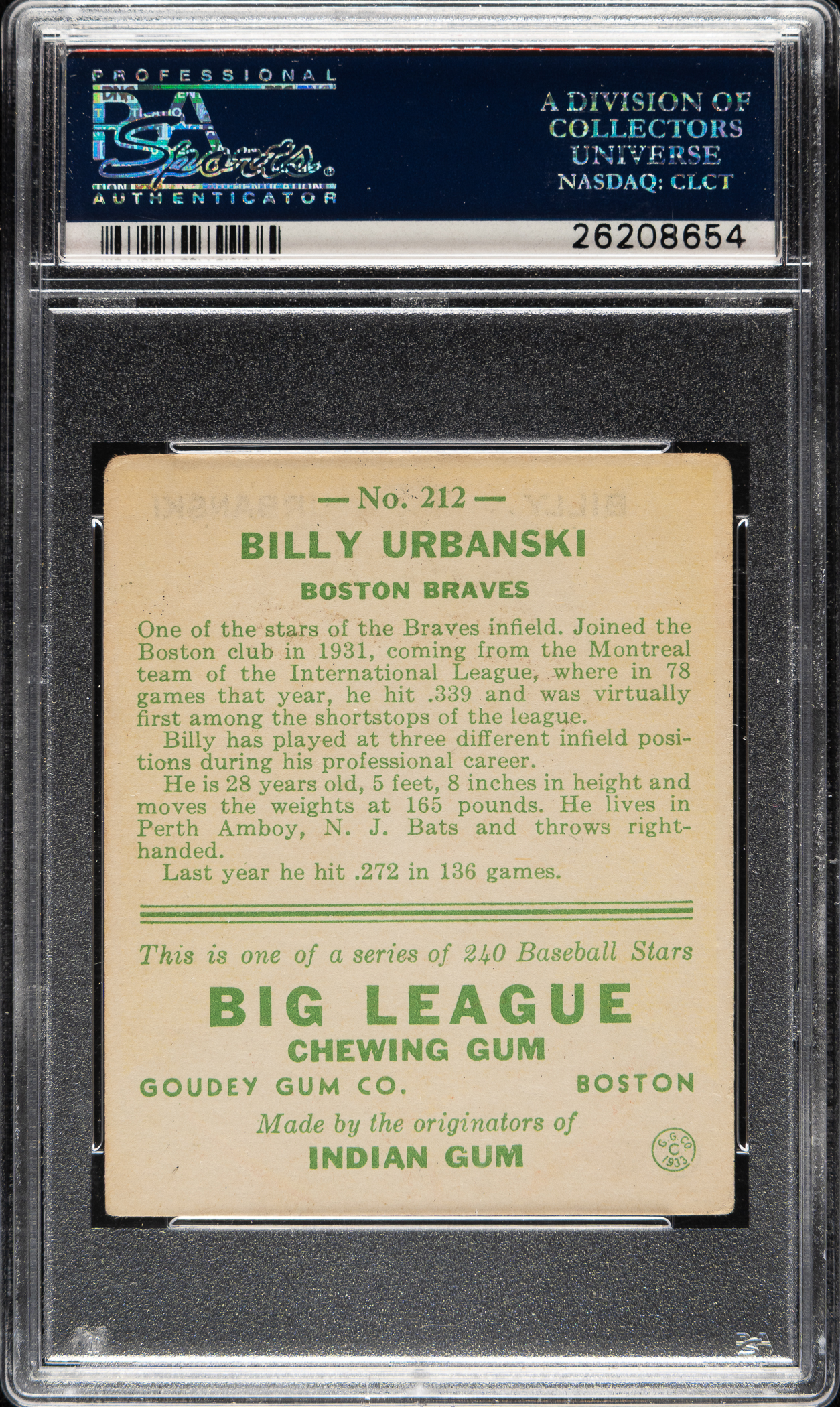 Graded VG-EX 4 by PSA. Boston Braves.
