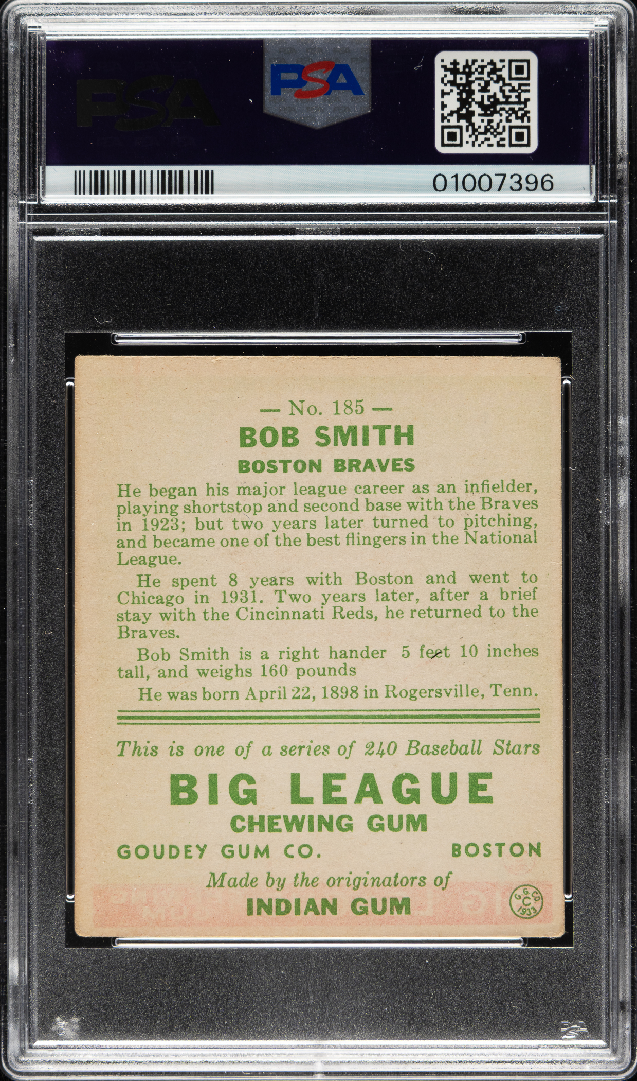 Lot # 1041: 1933 R319 Goudey #185 Bob Smith PSA VG-EX 4
