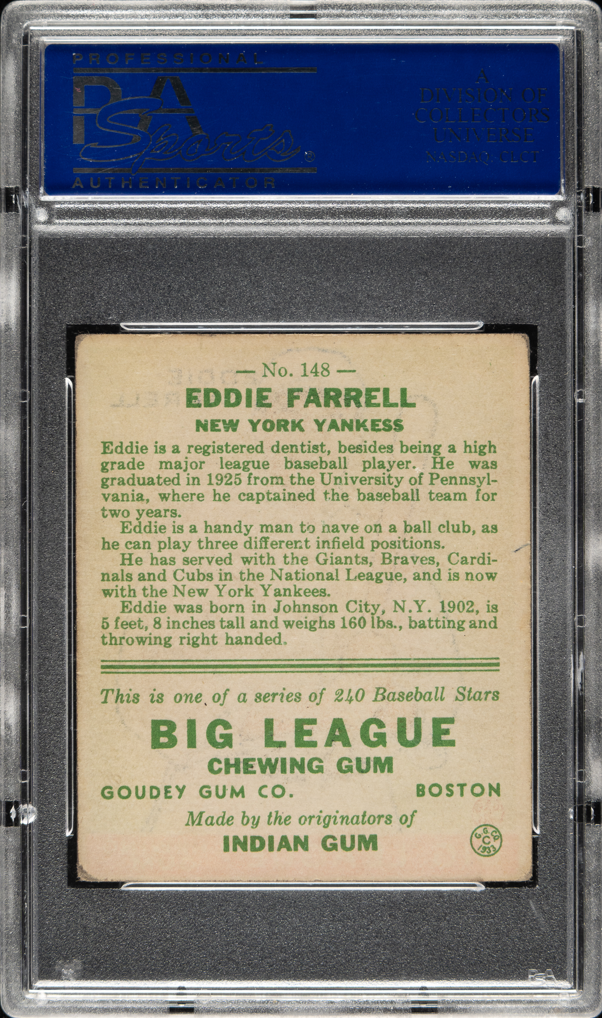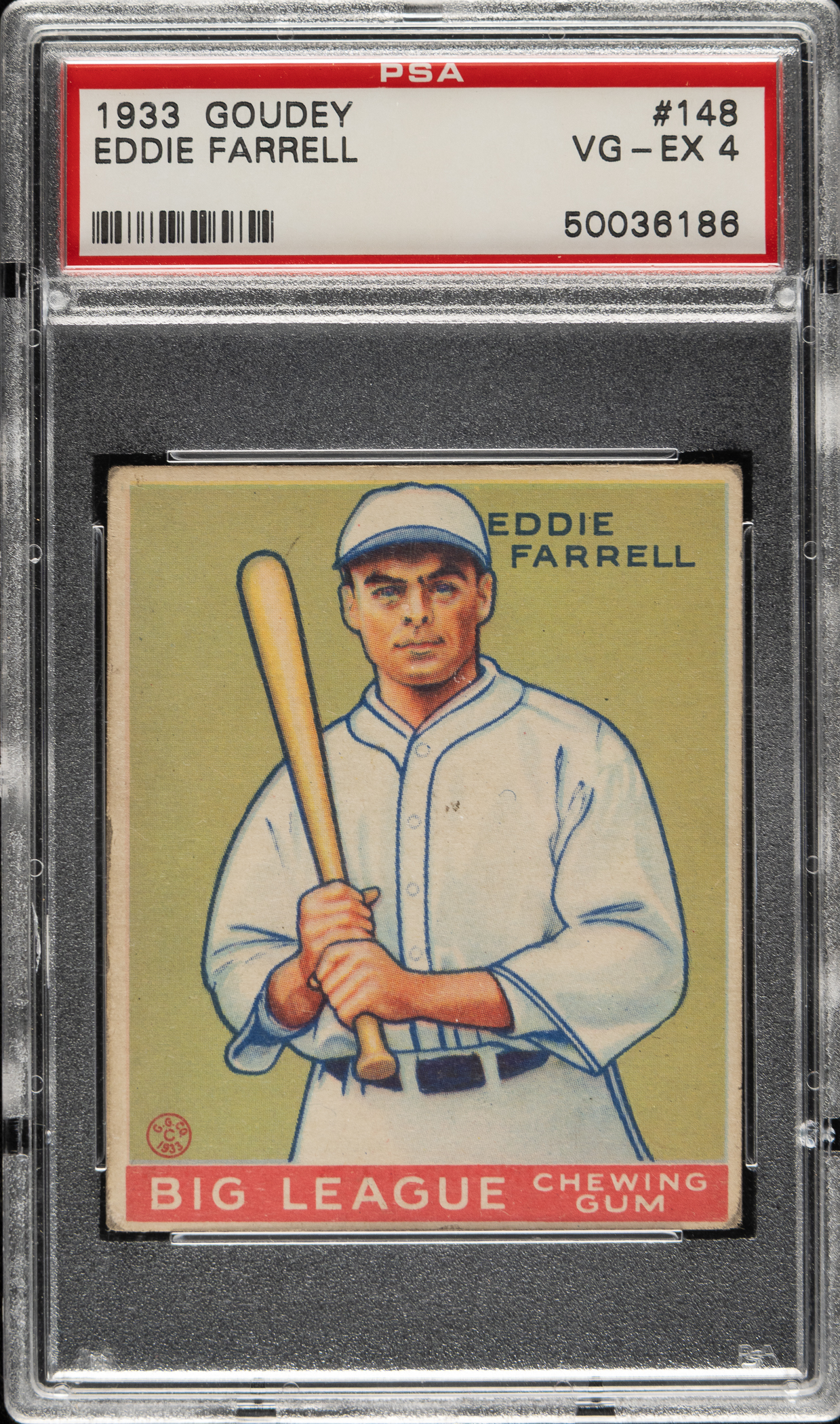 Lot # 1019: 1933 R319 Goudey #148 Eddie Farrell PSA VG-EX 4