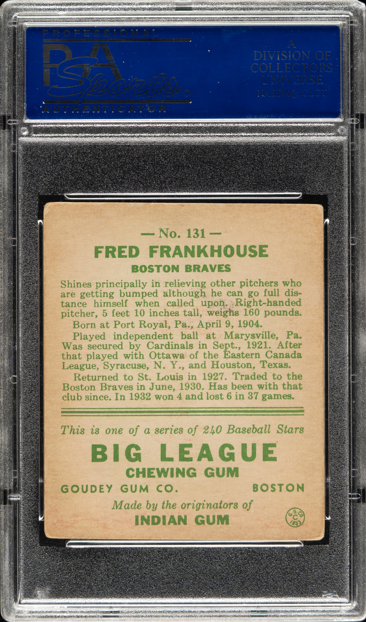 Lot # 1006: 1933 R319 Goudey #131 Fred Frankhouse PSA VG-EX 4