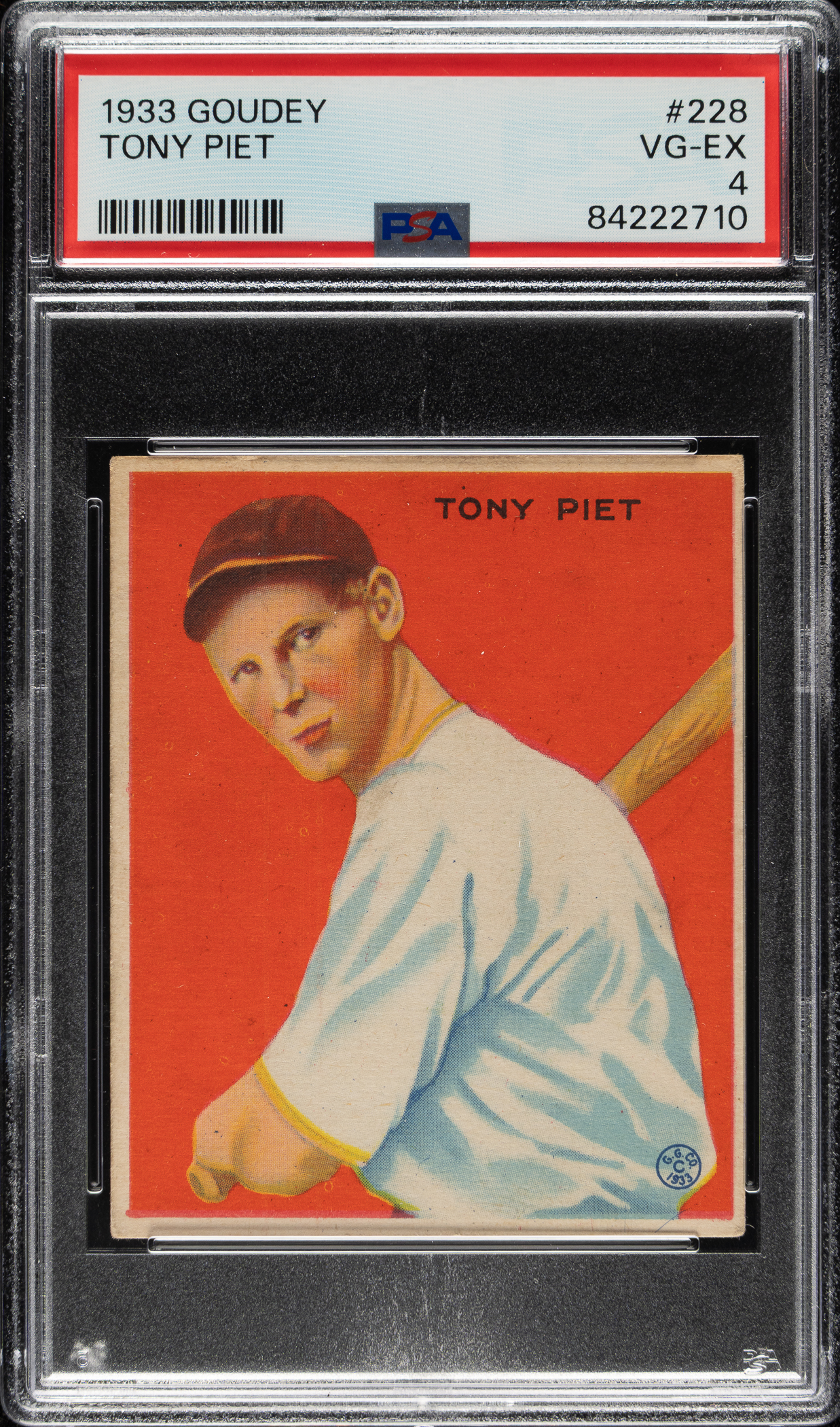 Lot # 1066: 1933 R319 Goudey #228 Tony Piet PSA VG-EX 4