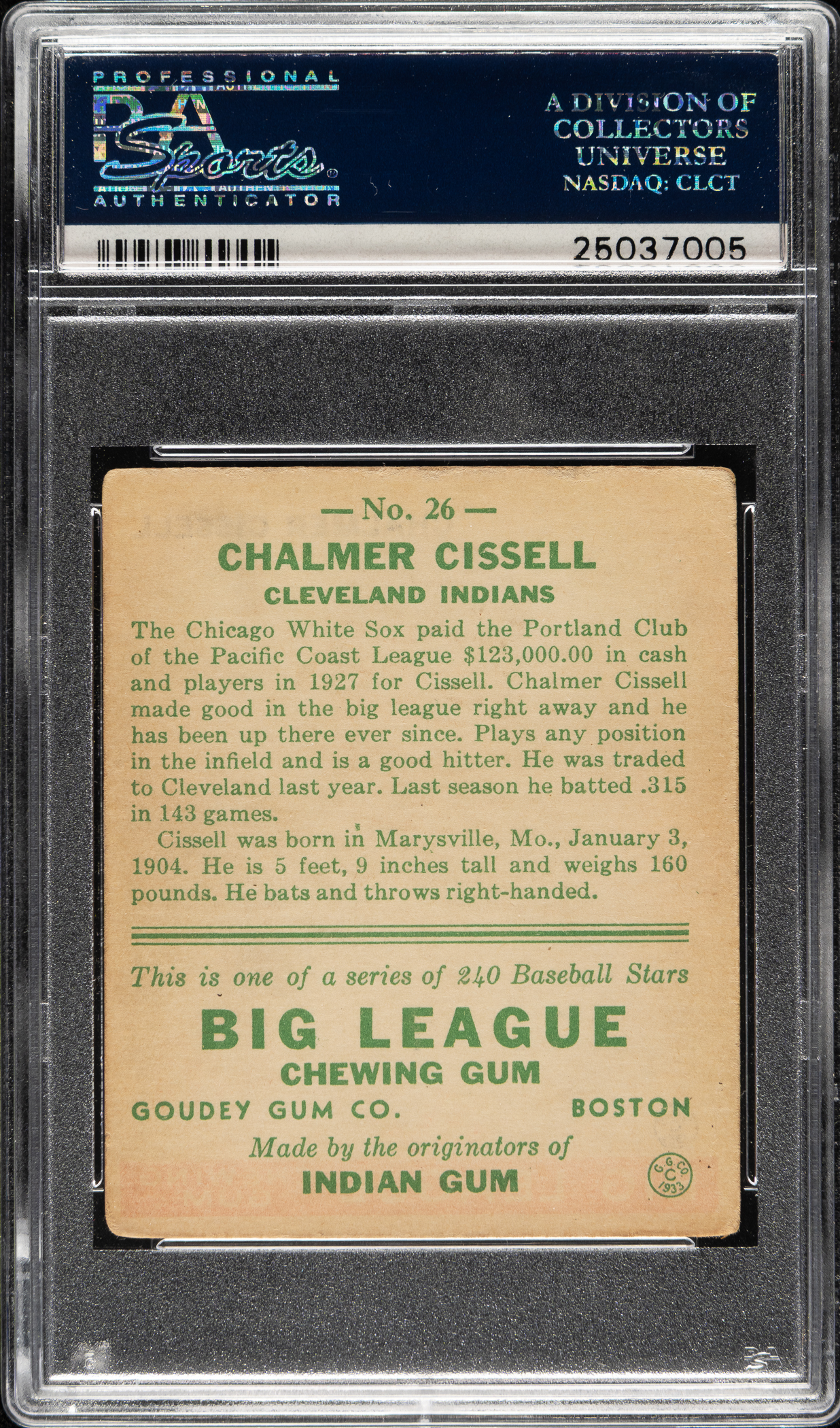 Lot # 1076: 1933 R319 Goudey #26 Chalmer Cissell PSA VG-EX 4