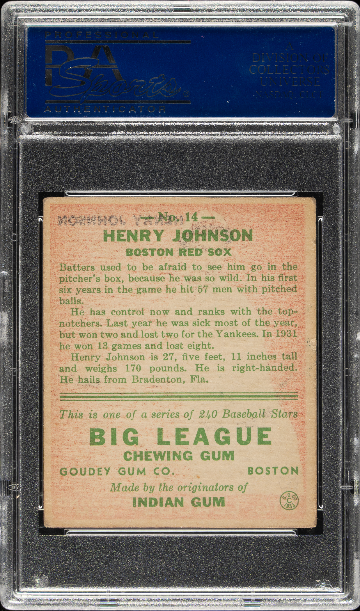 Lot # 1016: 1933 R319 Goudey #14 Henry Johnson PSA VG-EX 4
