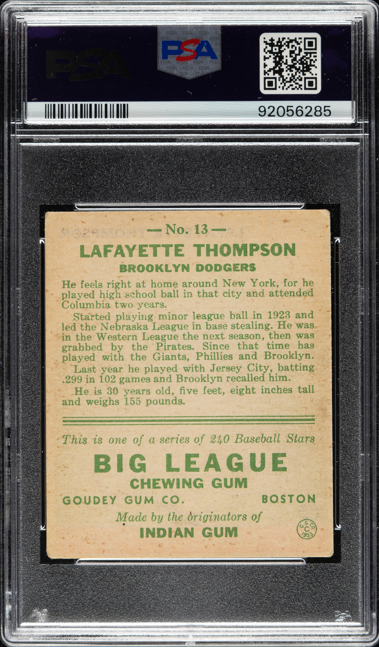 Lot # 1003: 1933 R319 Goudey #13 Lafayette Thompson PSA VG-EX 4