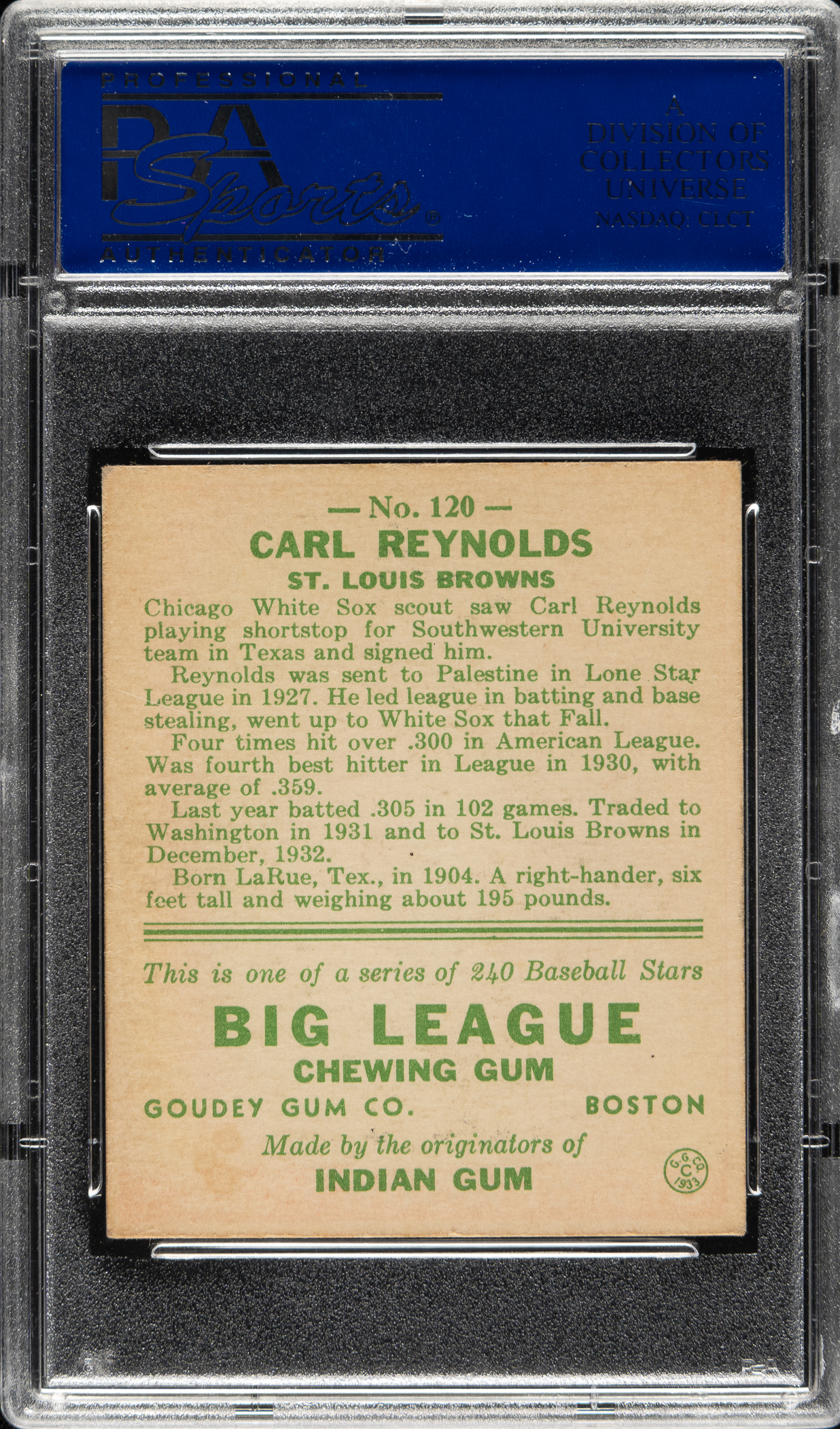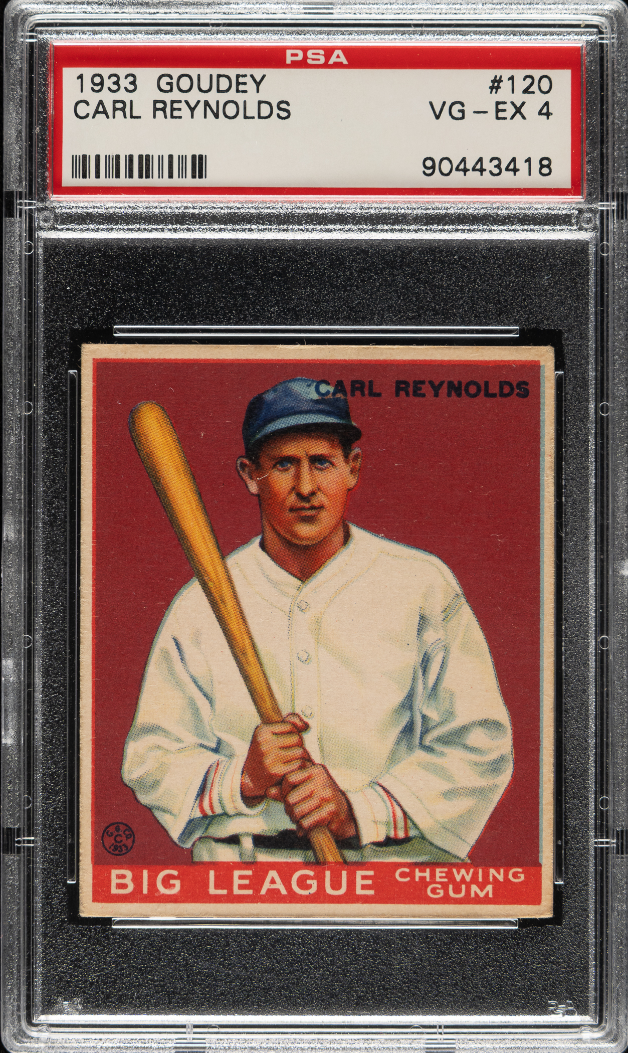 Lot # 1000: 1933 R319 Goudey #120 Carl Reynolds PSA VG-EX 4