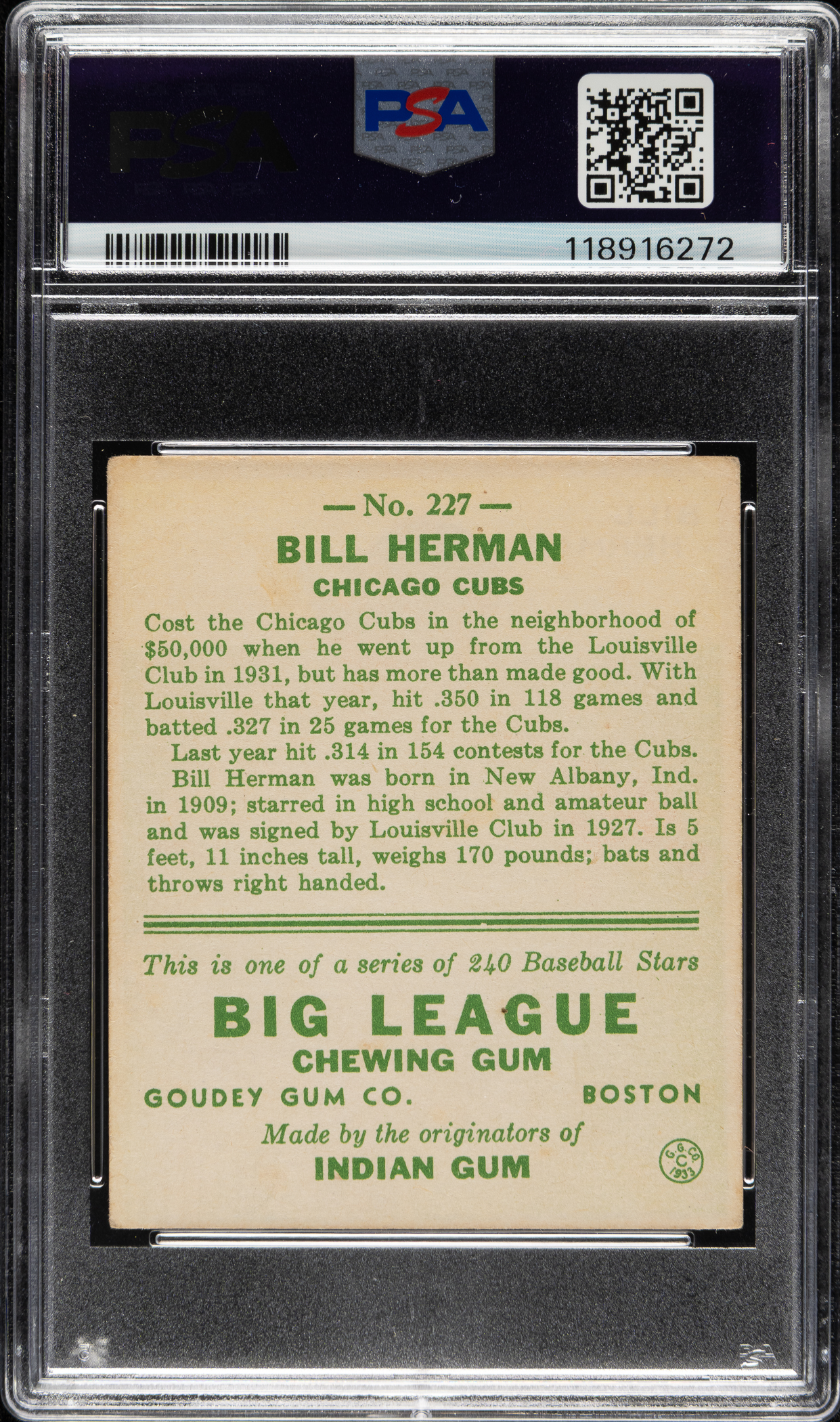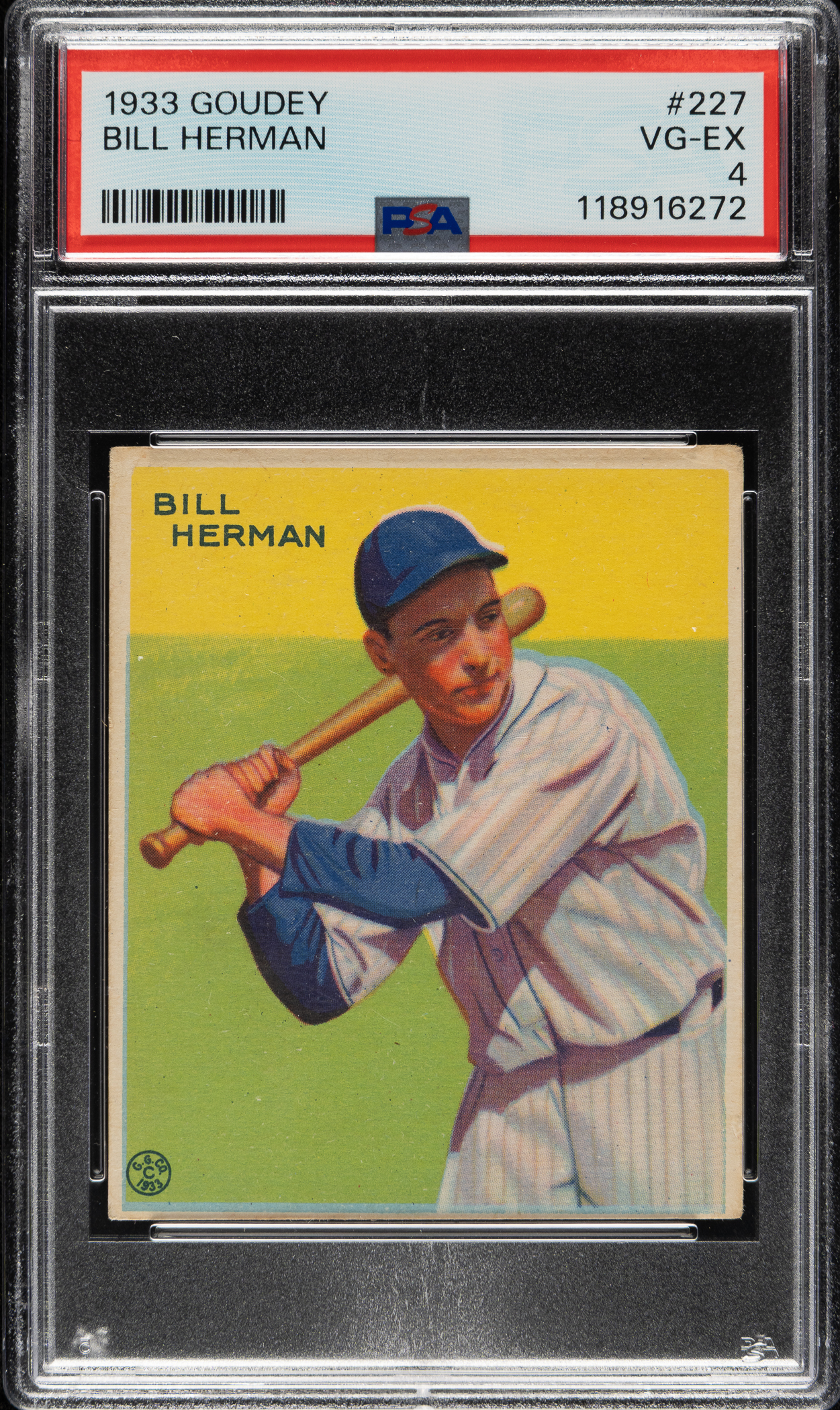 Graded VG-EX 4 by PSA. Chicago Cubs Hall of Famer Bill Herman.