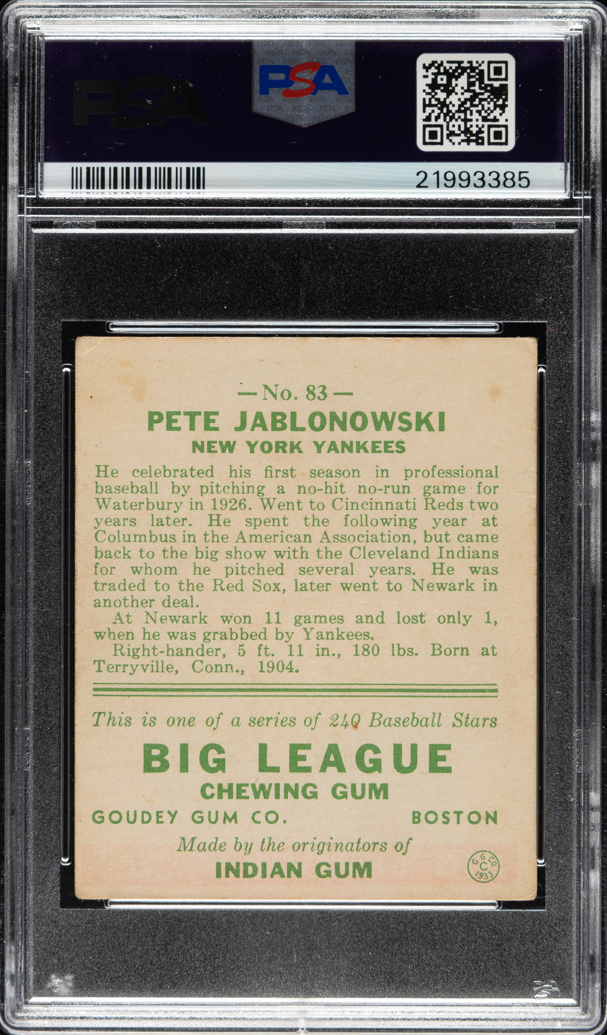 Lot # 1105: 1933 R319 Goudey #83 Pete Jablonowski PSA VG-EX 4