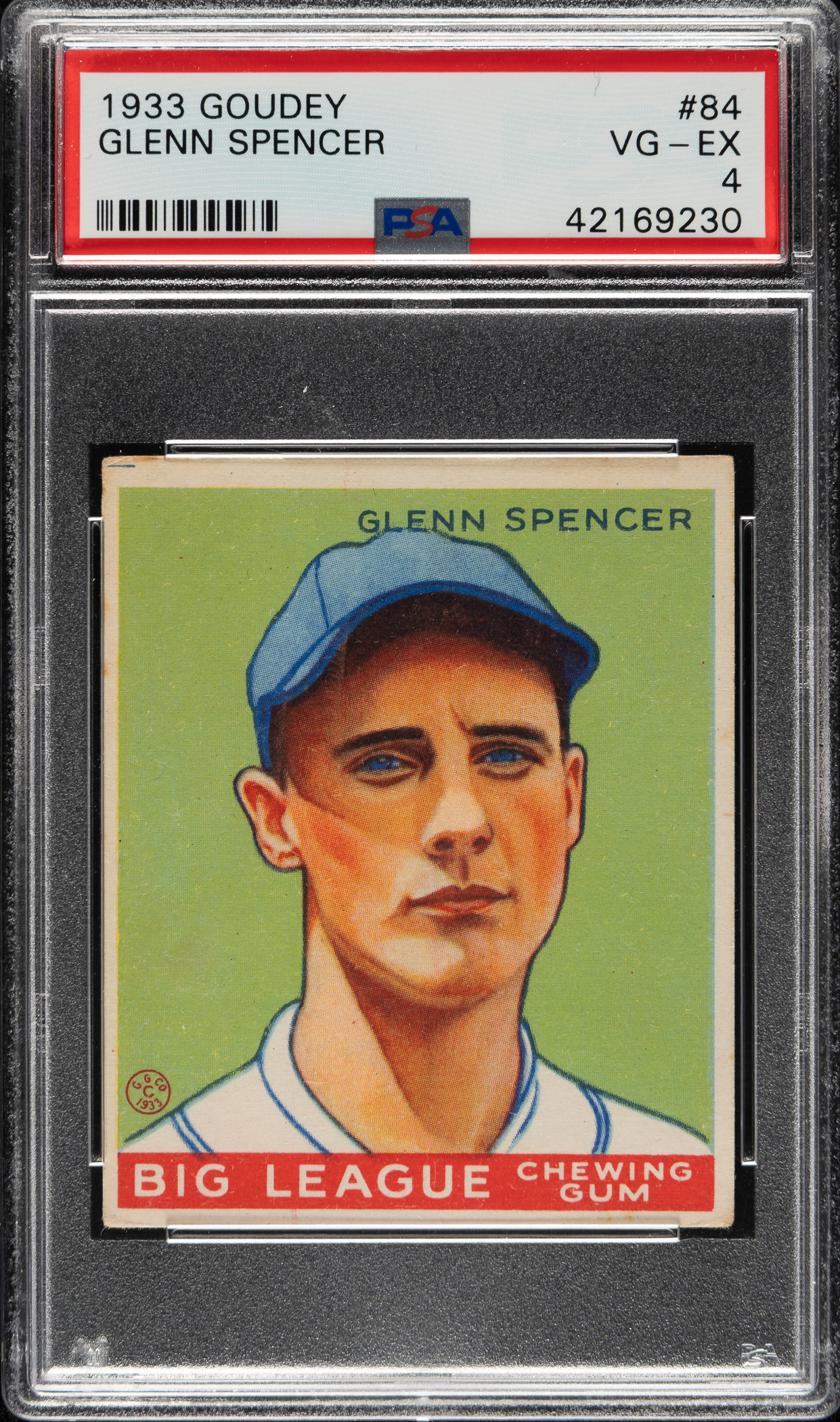 Lot # 1106: 1933 R319 Goudey #84 Glenn Spencer PSA VG-EX 4