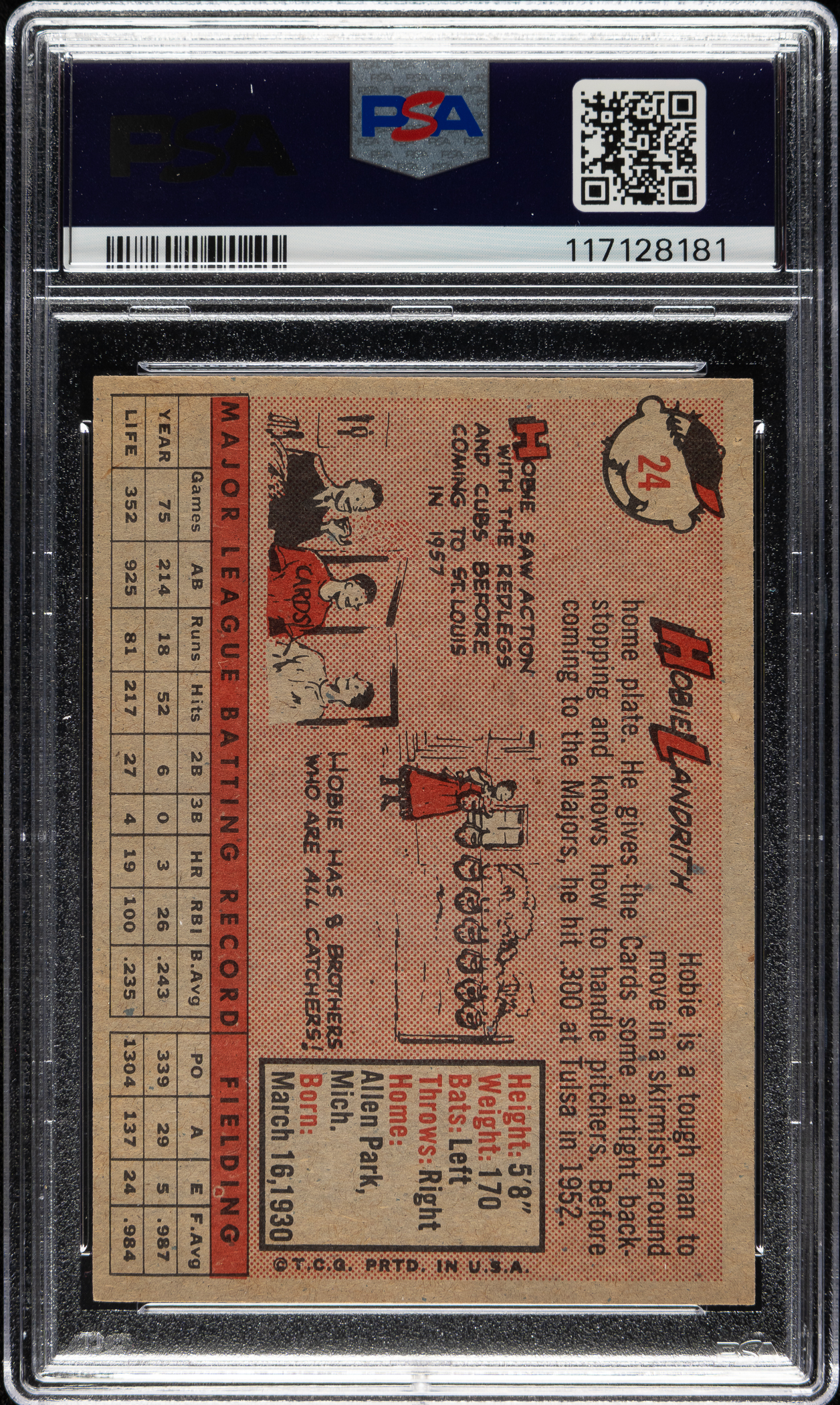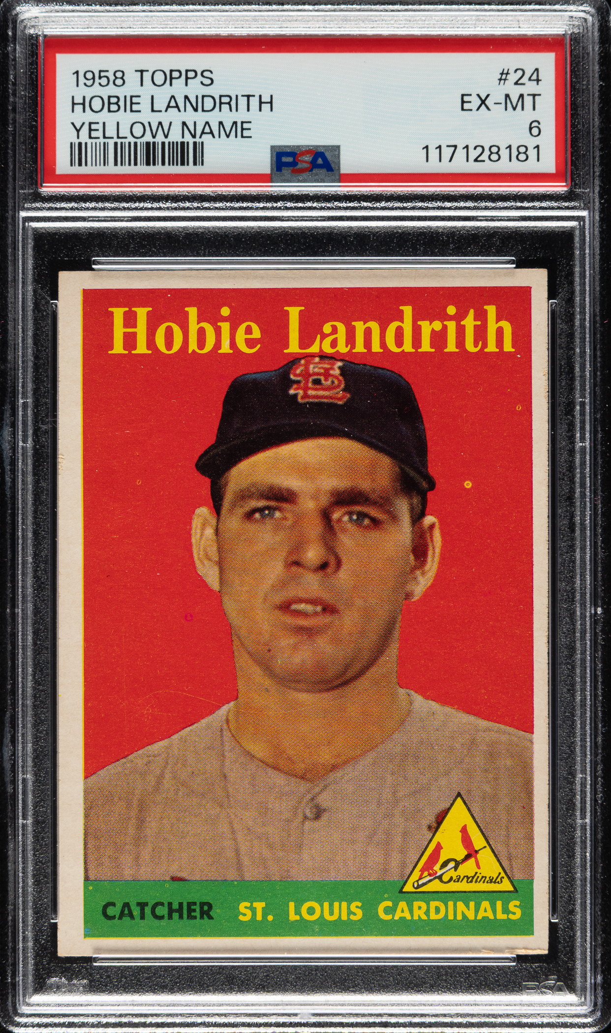 Lot # 1739: 1958 Topps #24 Hobie Landrith Yellow Name PSA EX-MT 6