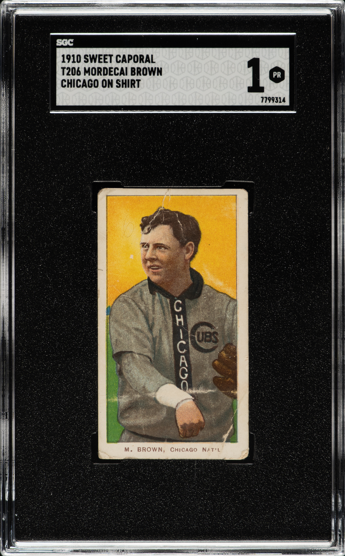 Graded POOR 1 by SGC. Chicago Cubs Hall of Famer Mordecai Brown.