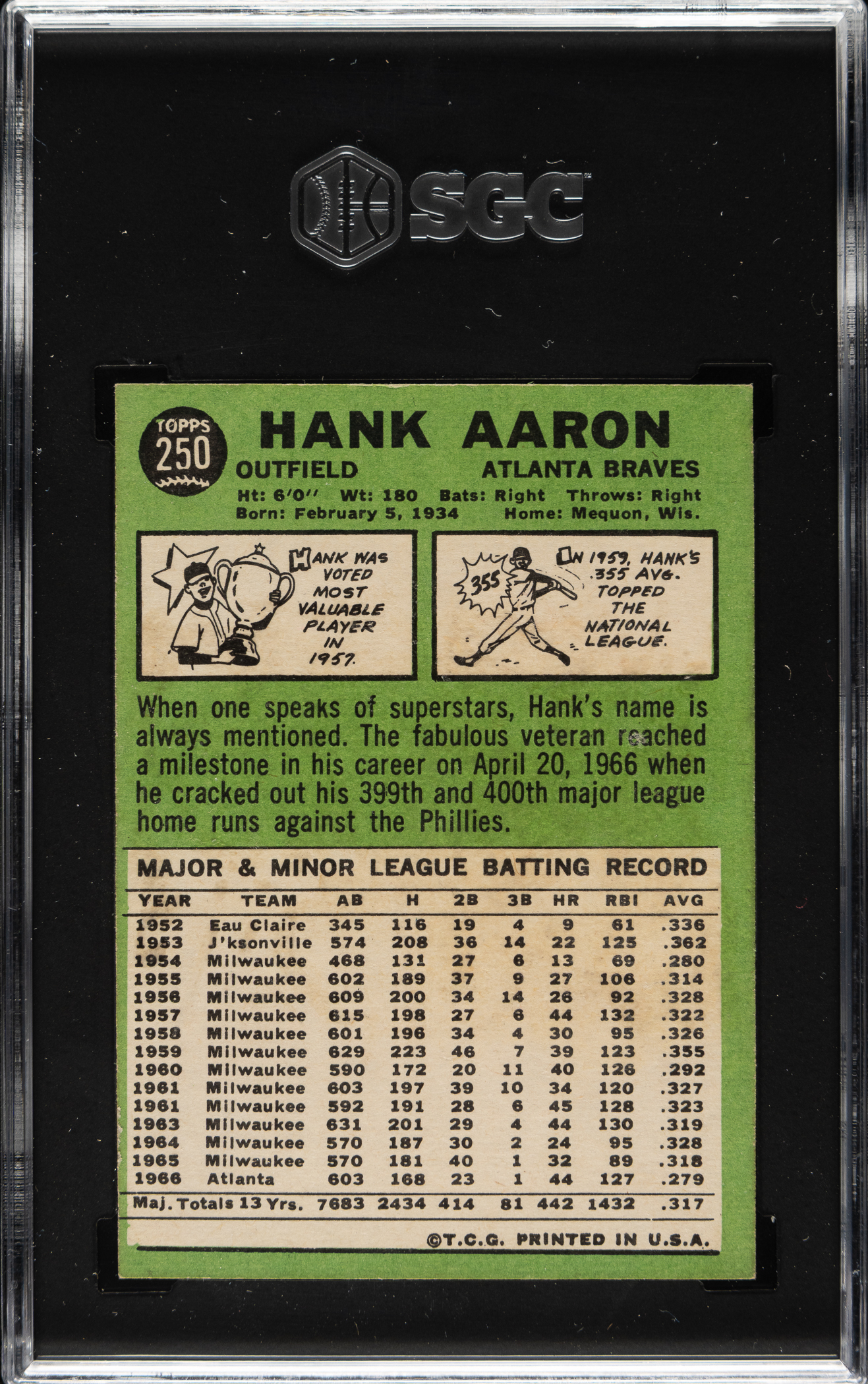 Graded EX/NM 6 by SGC. Atlanta Braves Hall of Famer Hank Aaron.