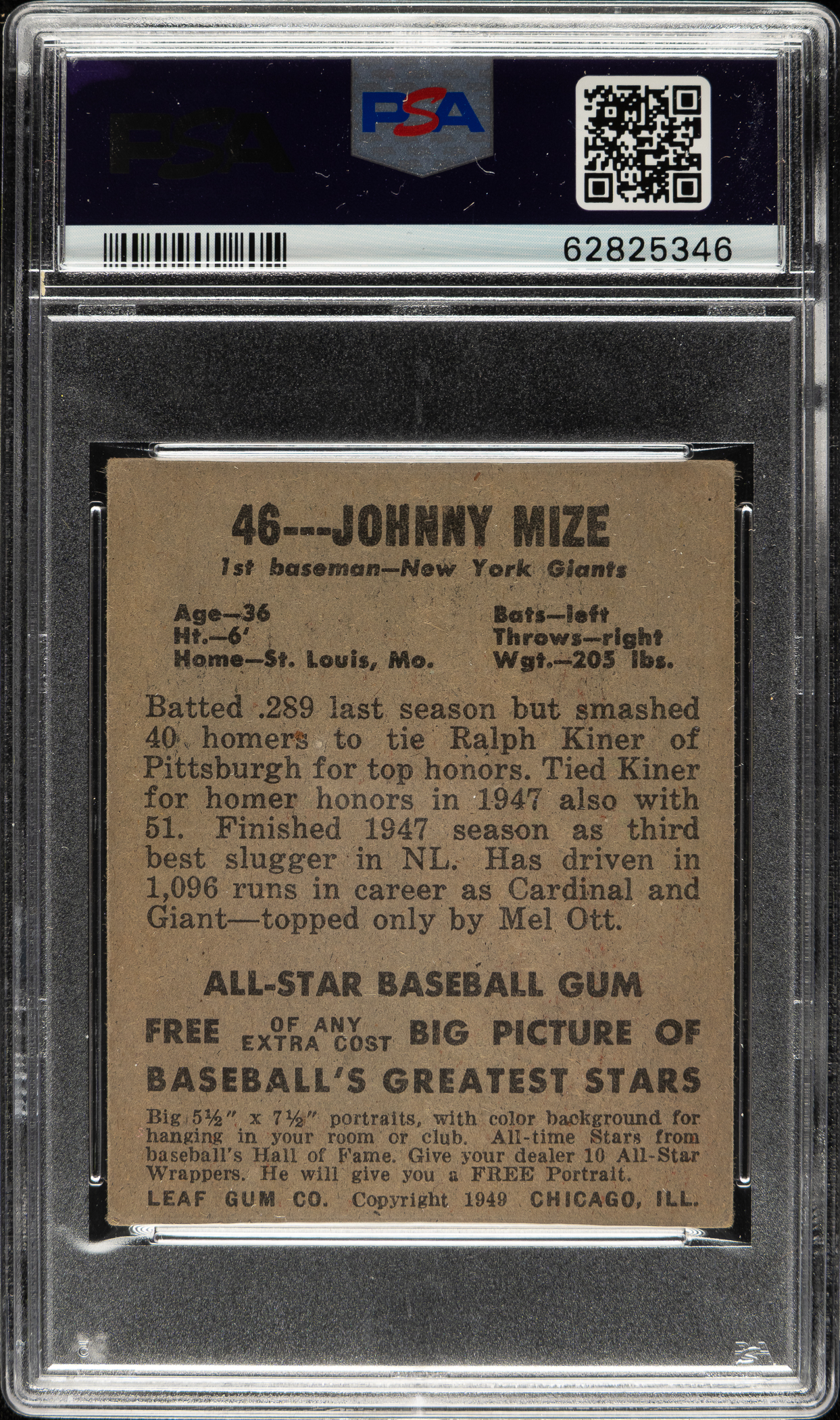Graded VG-EX 4 by PSA. New York Giants Hall of Famer Johnny Mize.