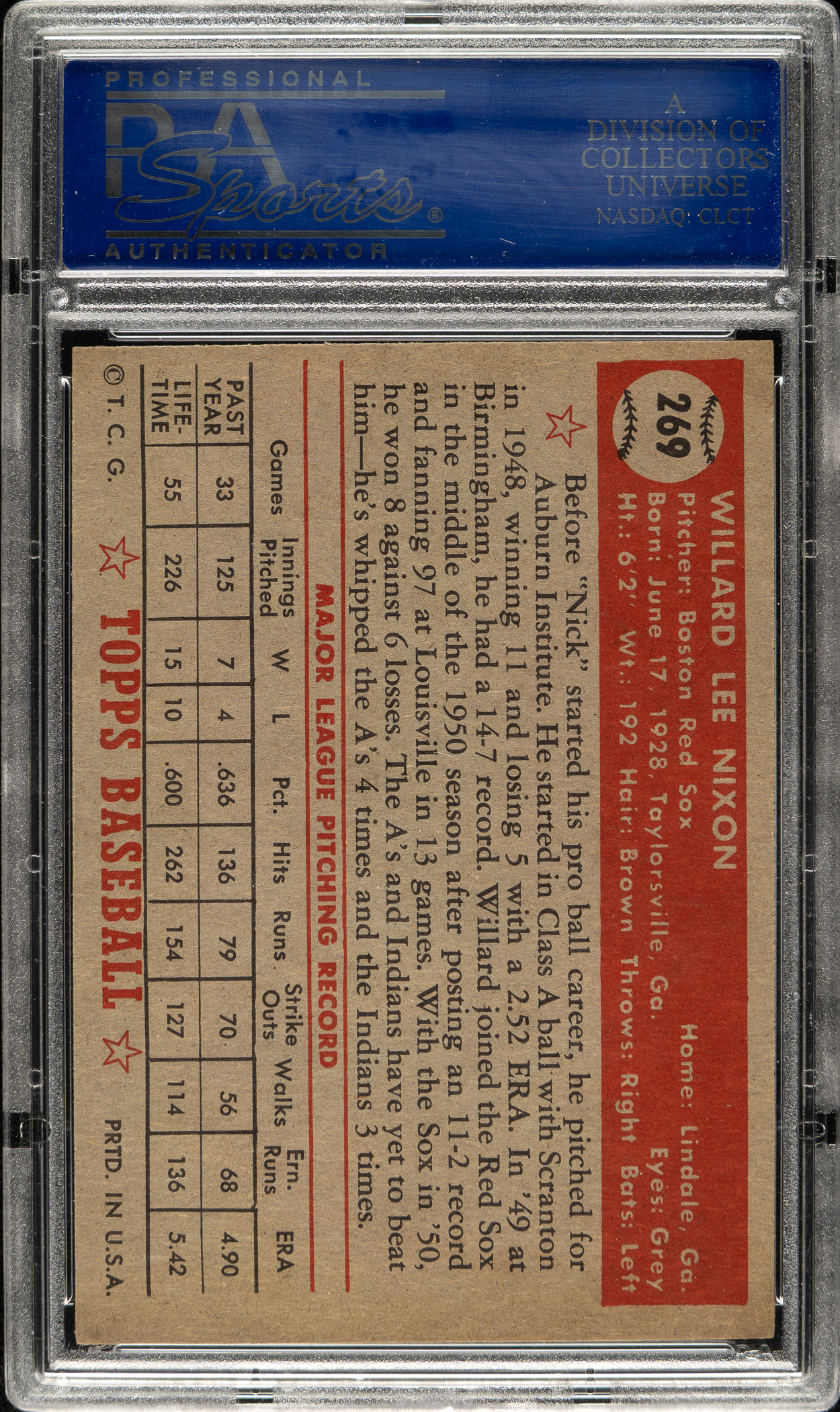 Lot # 1456: 1952 Topps #269 Willard Nixon PSA EX-MT 6