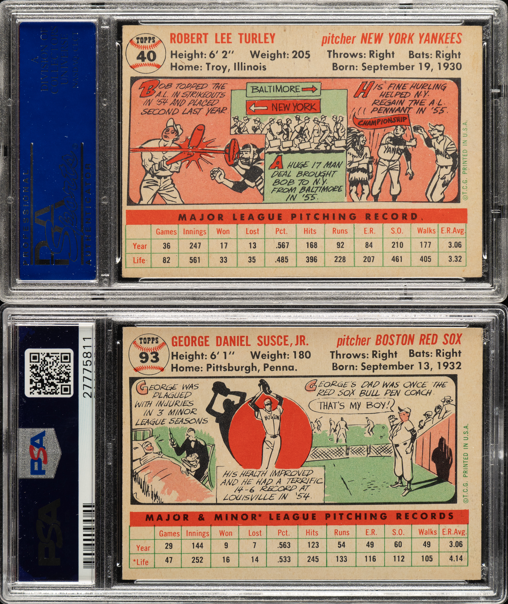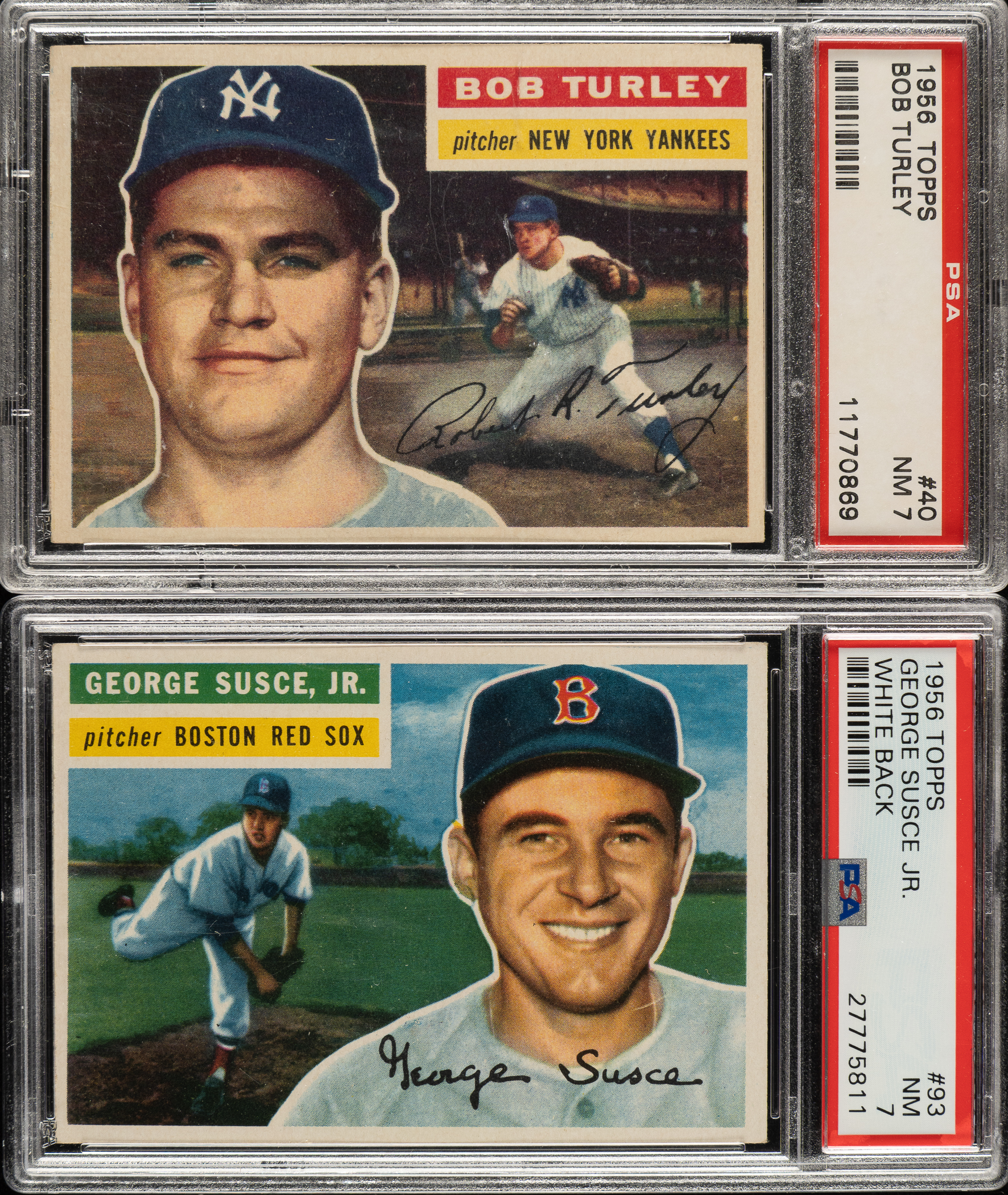 Pair of 1956 Topps cards, each graded and encapsulated NM 7 by PSA. This pair consists of the following: #40 and 93. Total: 2 cards.