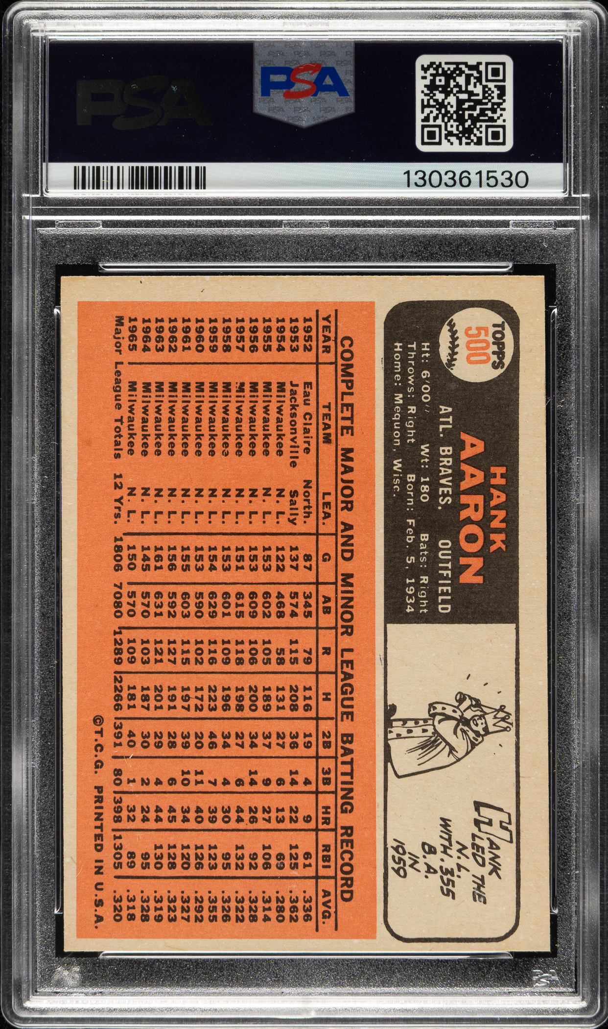 1966 Topps #500 Hank Aaron PSA EX-MT 6