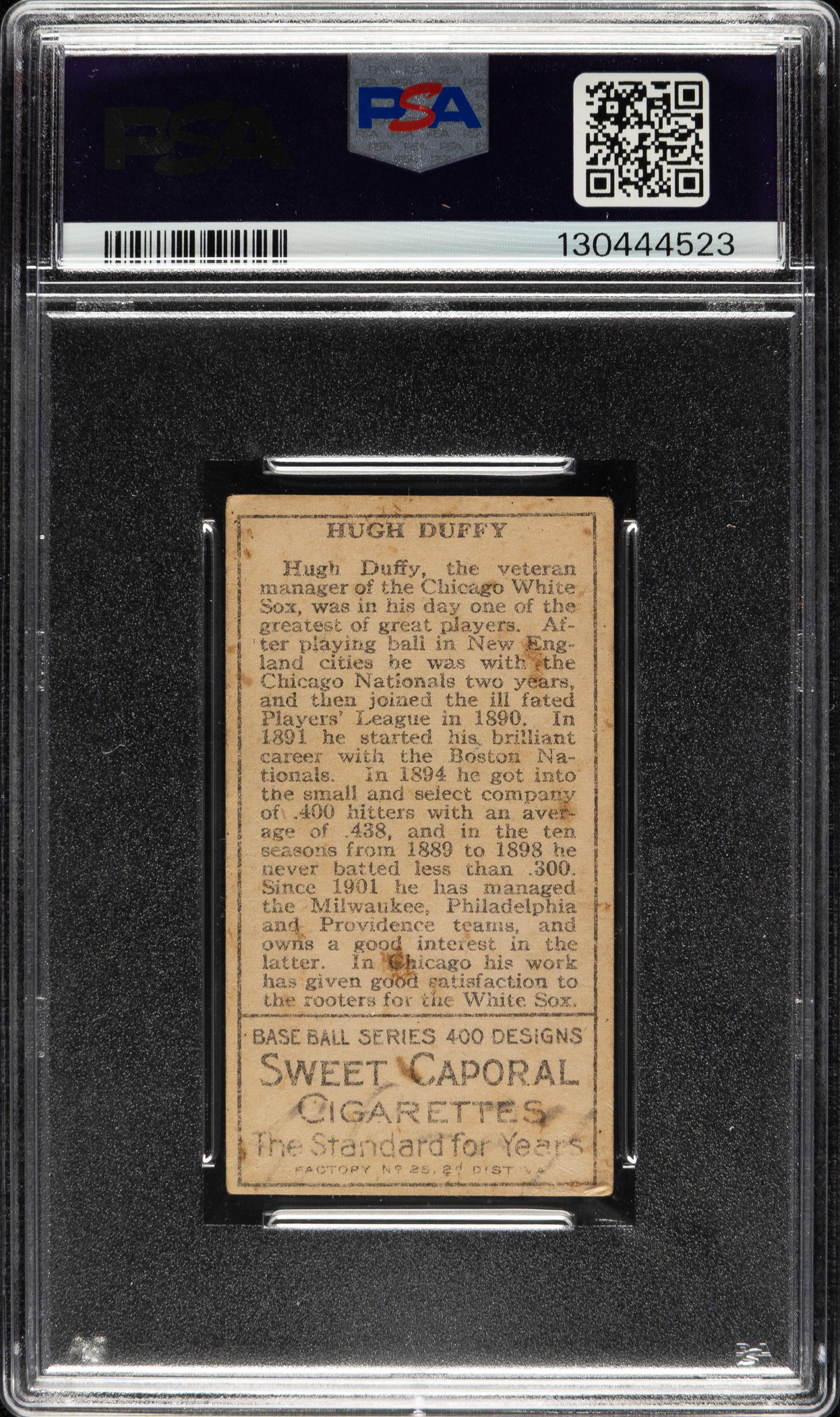 Graded VG 3 (MK) by PSA. Chicago White Sox Hall of Famer Hugh Duffy.