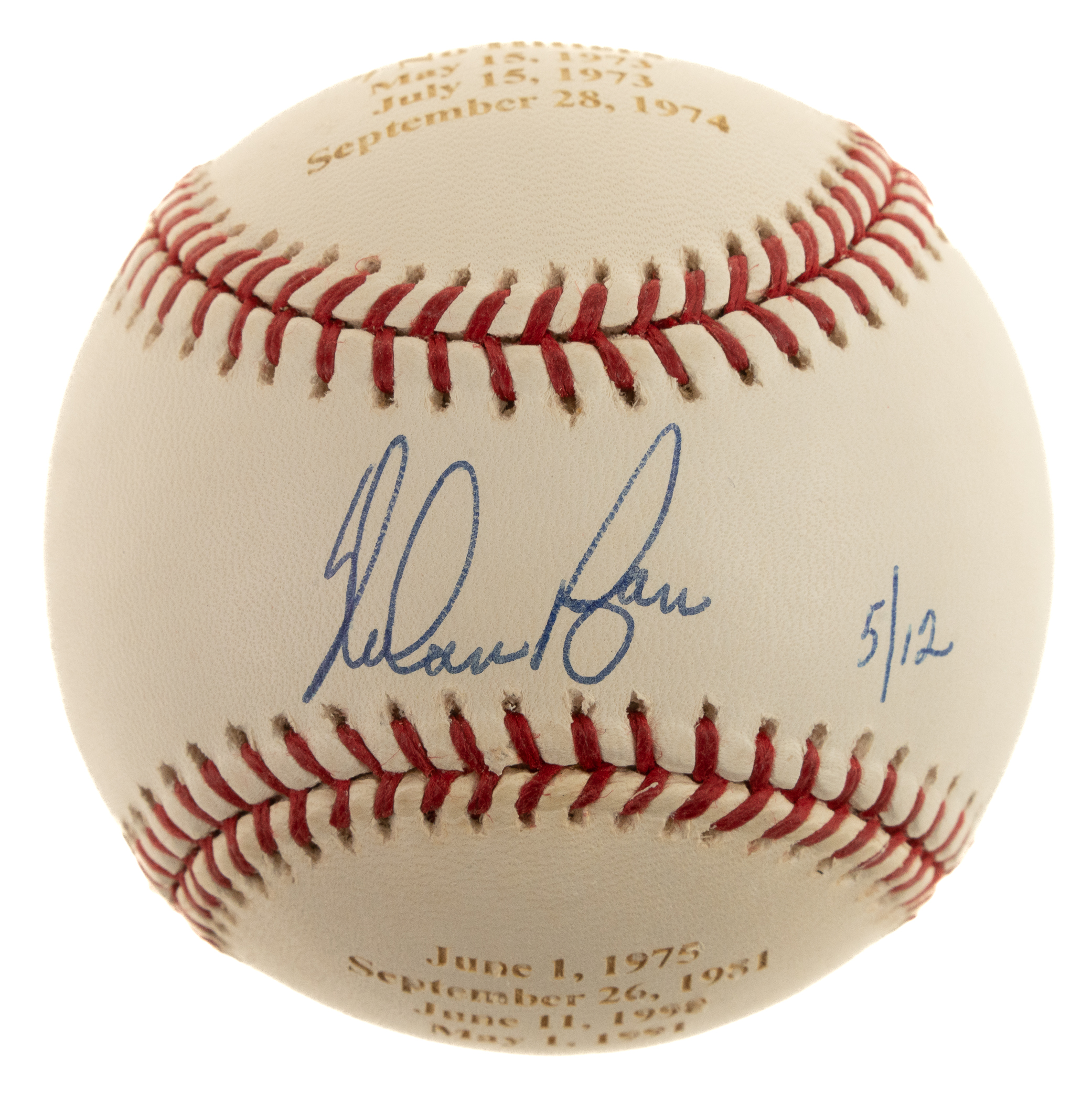 New York Mets Hall of Famer Nolan Ryan signed baseball. This limited edition baseball has been numbered 5 out of 12. MLB certification sticker is affixed to the baseball.