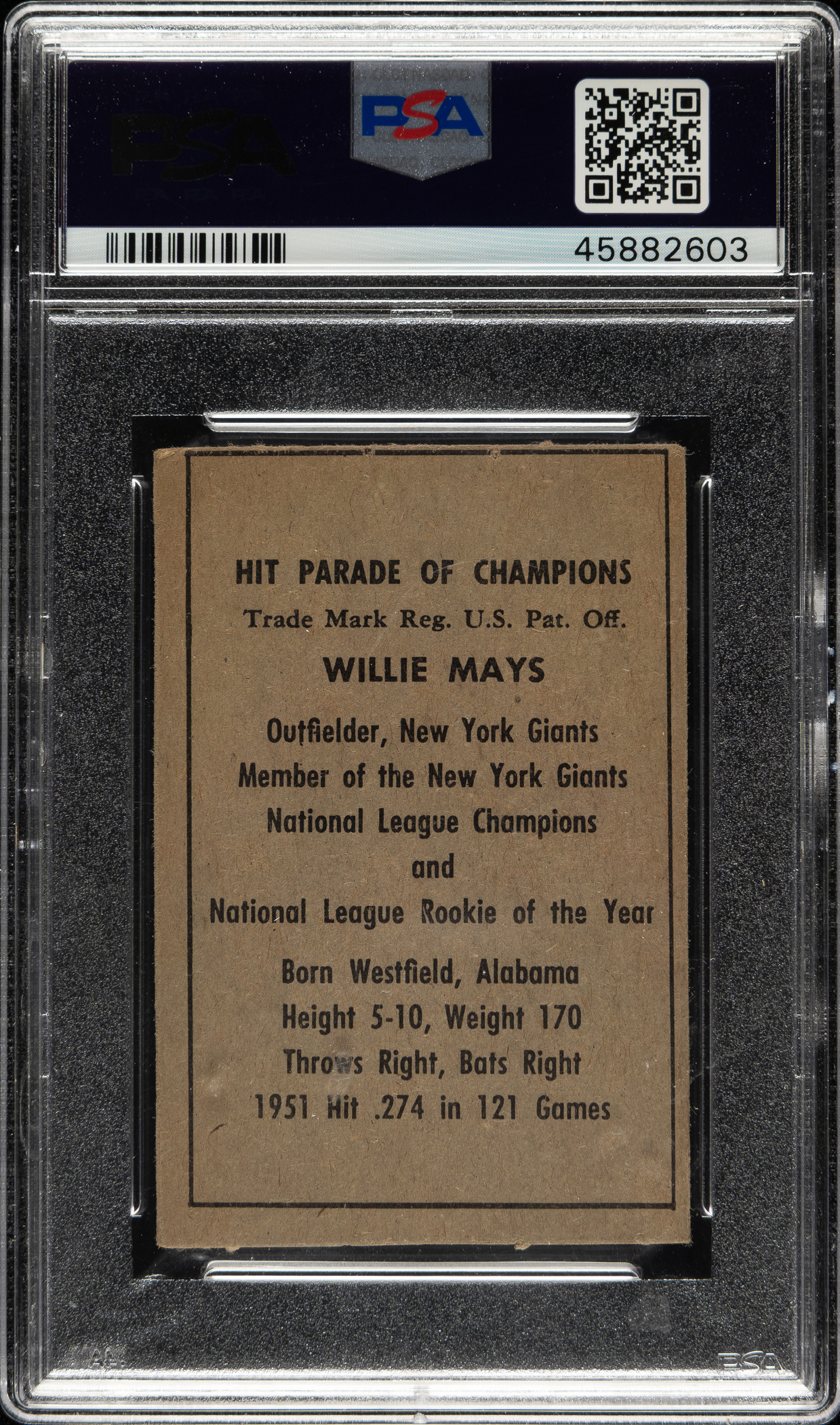 Graded VG-EX 4 by PSA. New York Giants Hall of Famer Willie Mays.