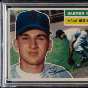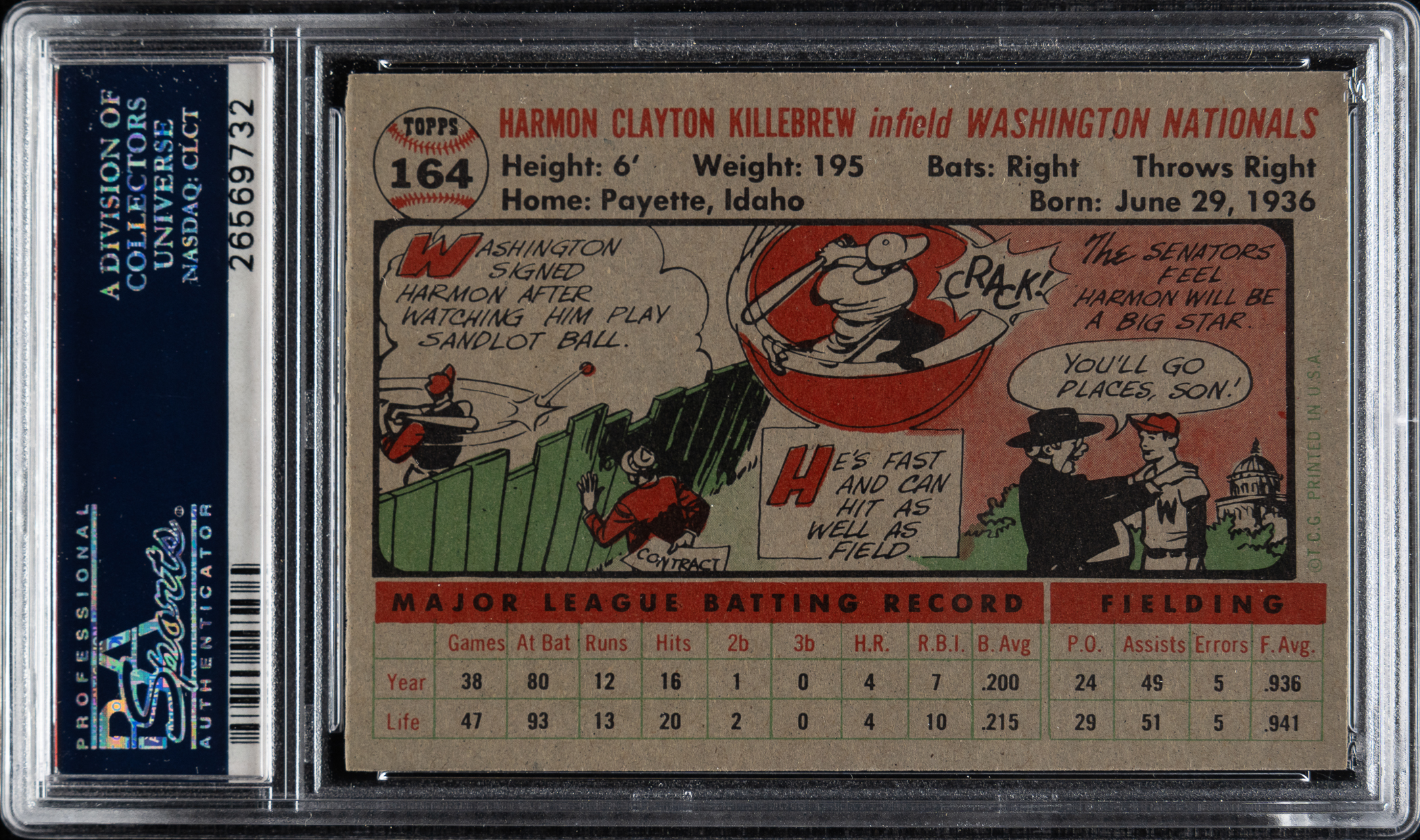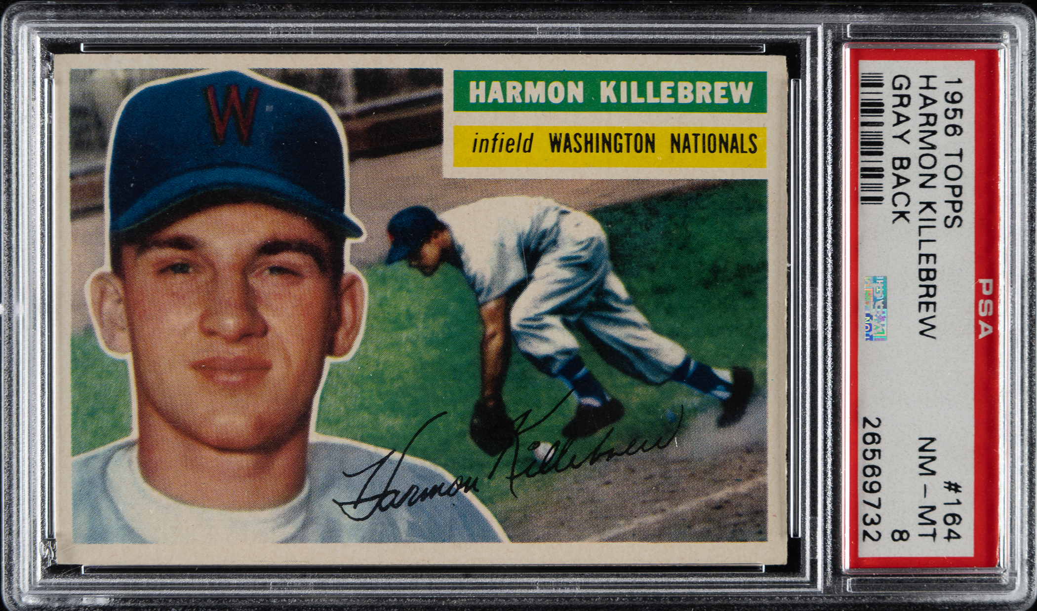 Lot # 1295: 1956 Topps #164 Harmon Killebrew Gray Back PSA NM-MT 8