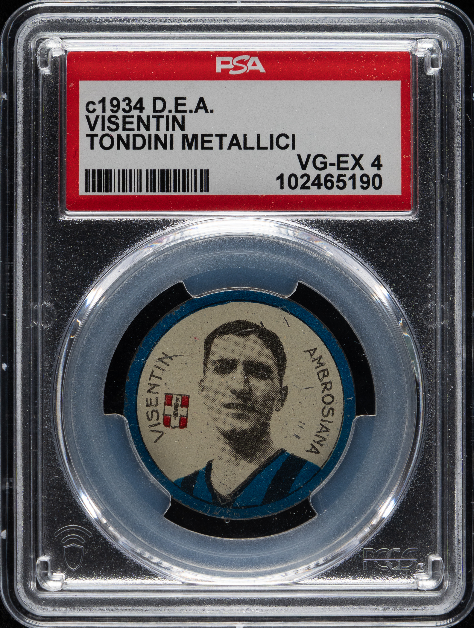 Lot # 3243: Circa 1934 D. E. A. Tondini Metallici Soccer Visentin PSA VG-EX 4
