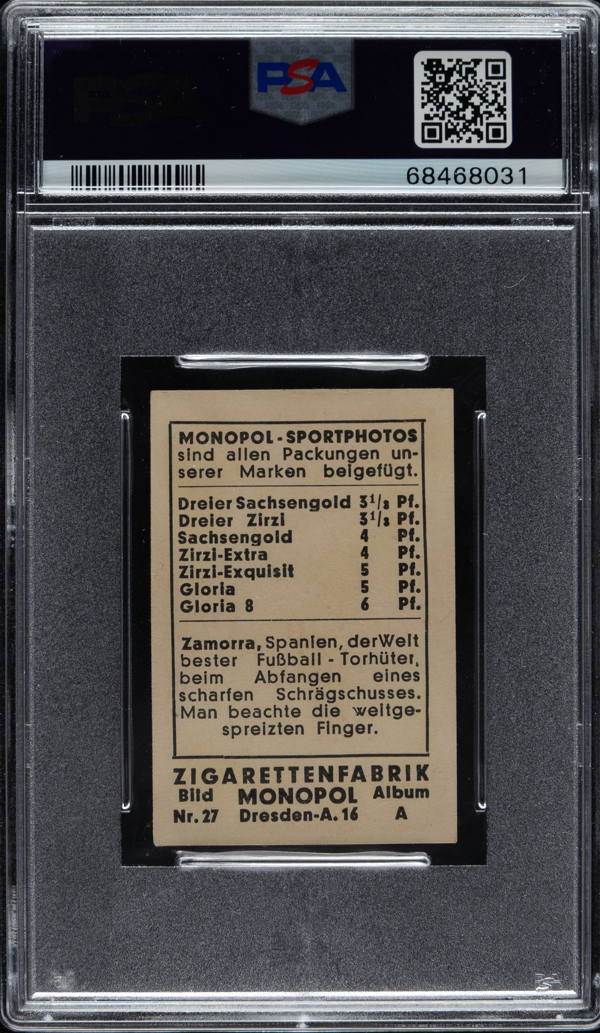 Lot # 3238: 1932 Monopol Sportphotos Soccer #27 Ricardo Zamora PSA VG-EX 4