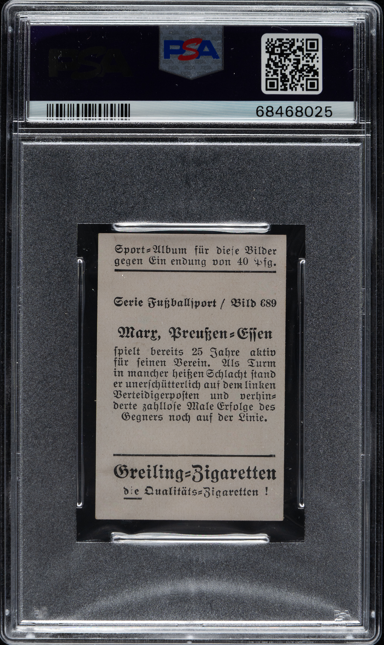 Lot # 3227: 1926 Greiling Serie Fussball Soccer Small #689 Marx PSA EX-MT 6