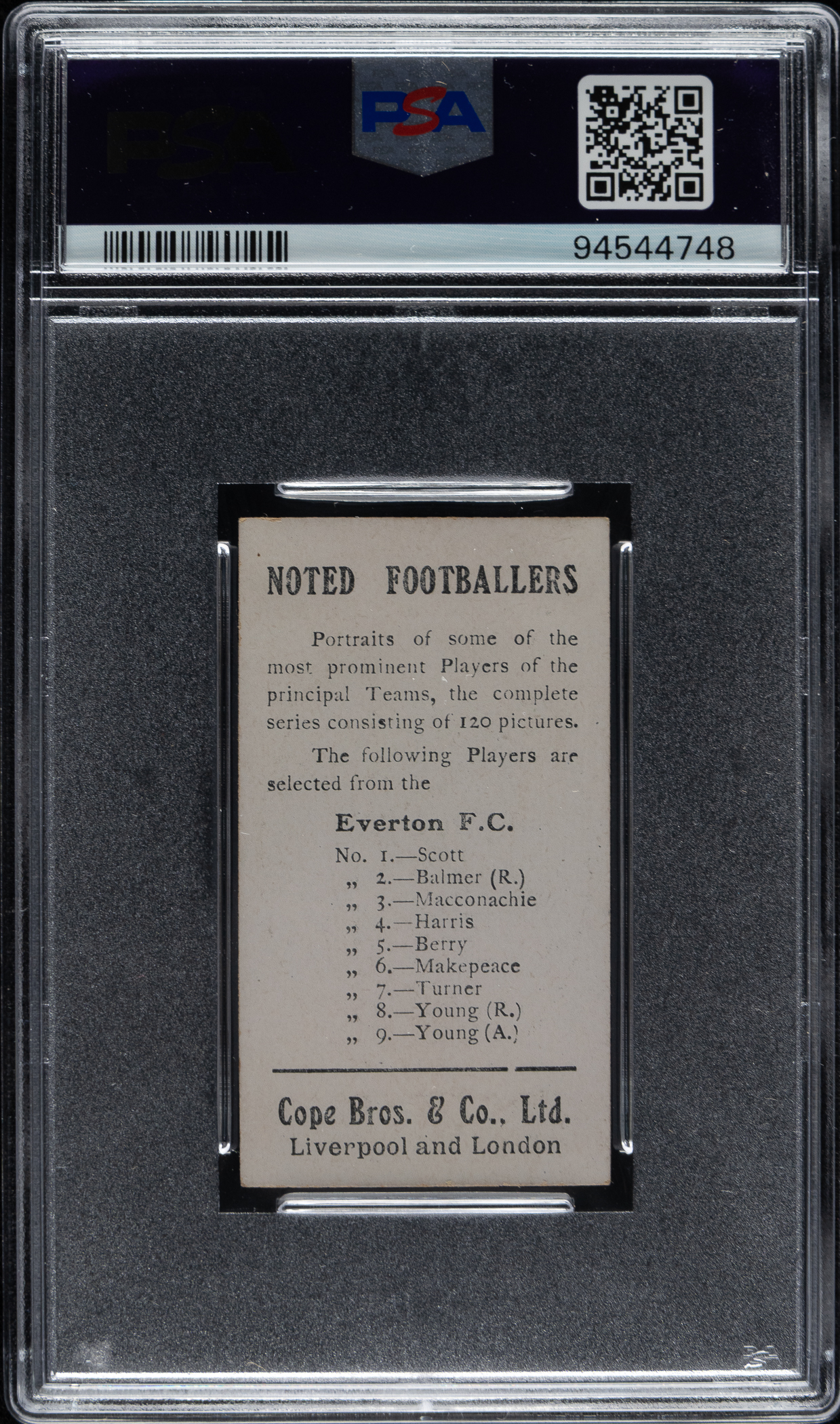Lot # 3199: 1910 Cope Bros & Co. Noted Footballers Clips Cigarettes #3 MacConachie PSA EX-MT 6