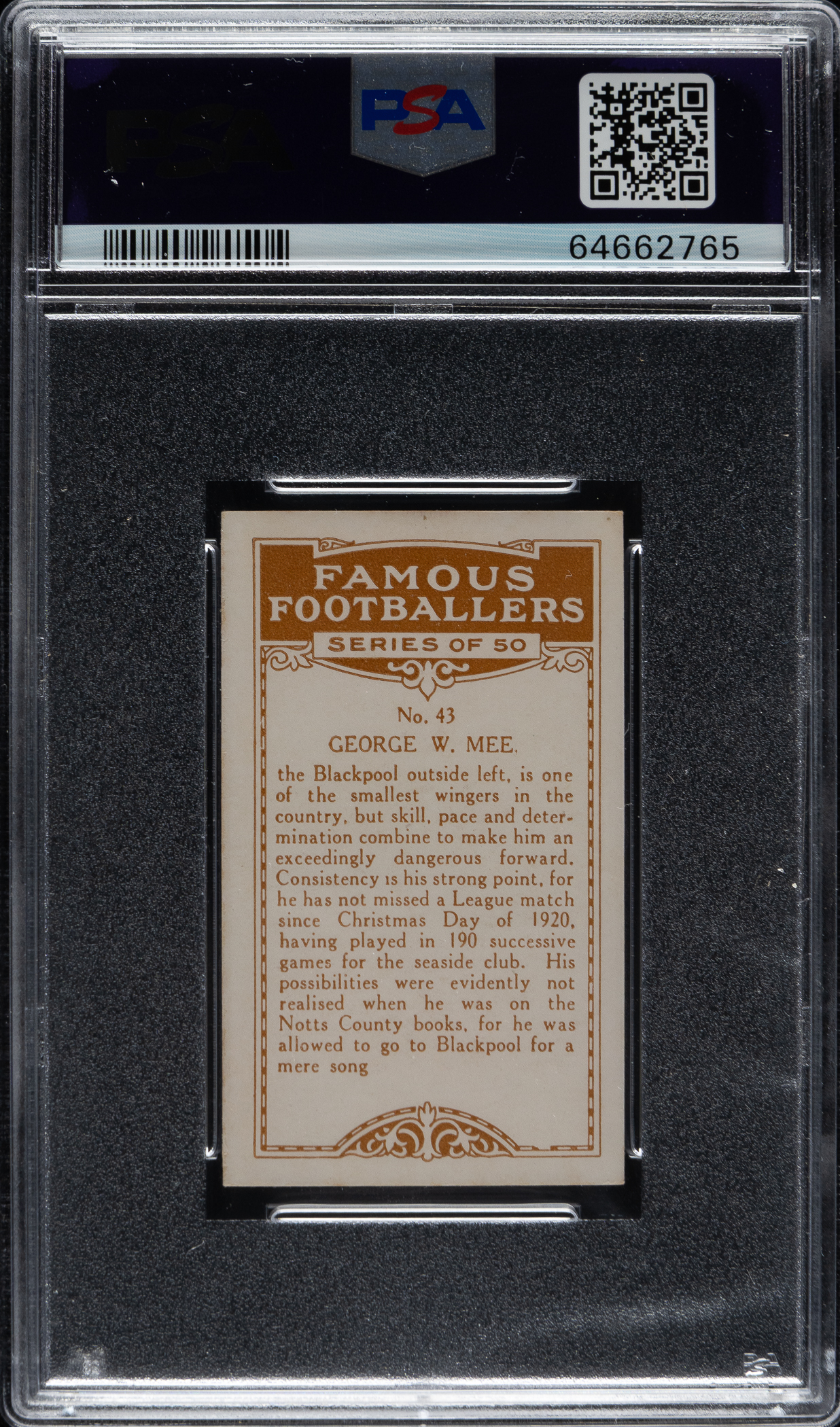 Lot # 3223: 1925 British American Tobacco Famous Footballers Third Series Soccer #43 George W. Mee PSA NM-MT 8