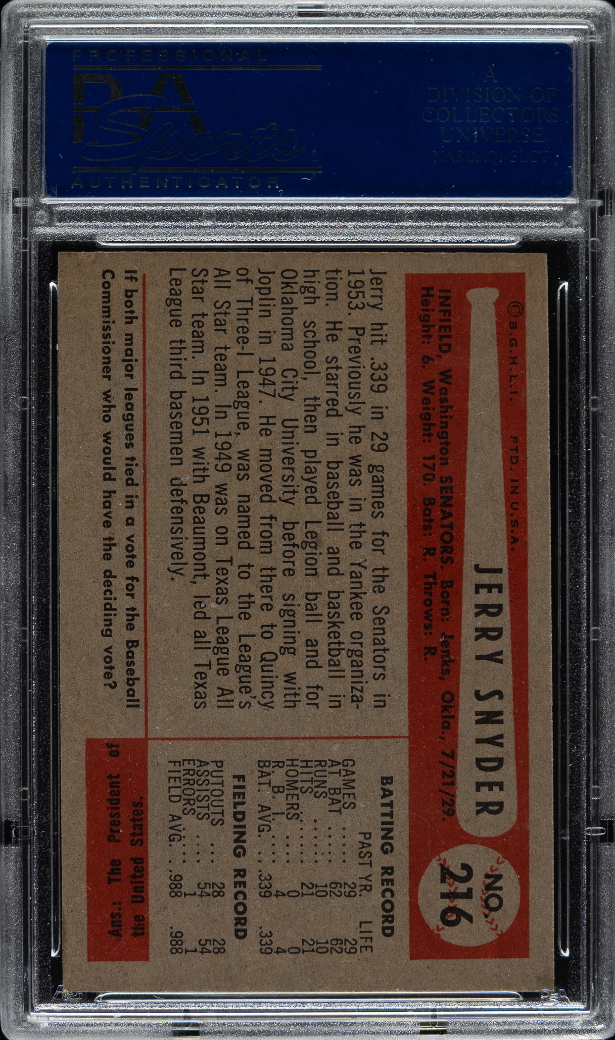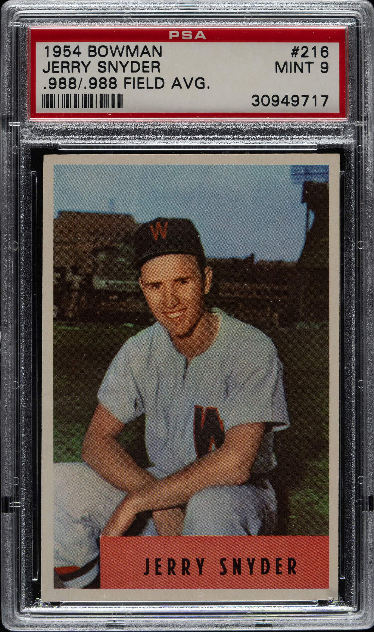 Lot # 1565: 1954 Bowman #216 Jerry Snyder PSA MINT 9