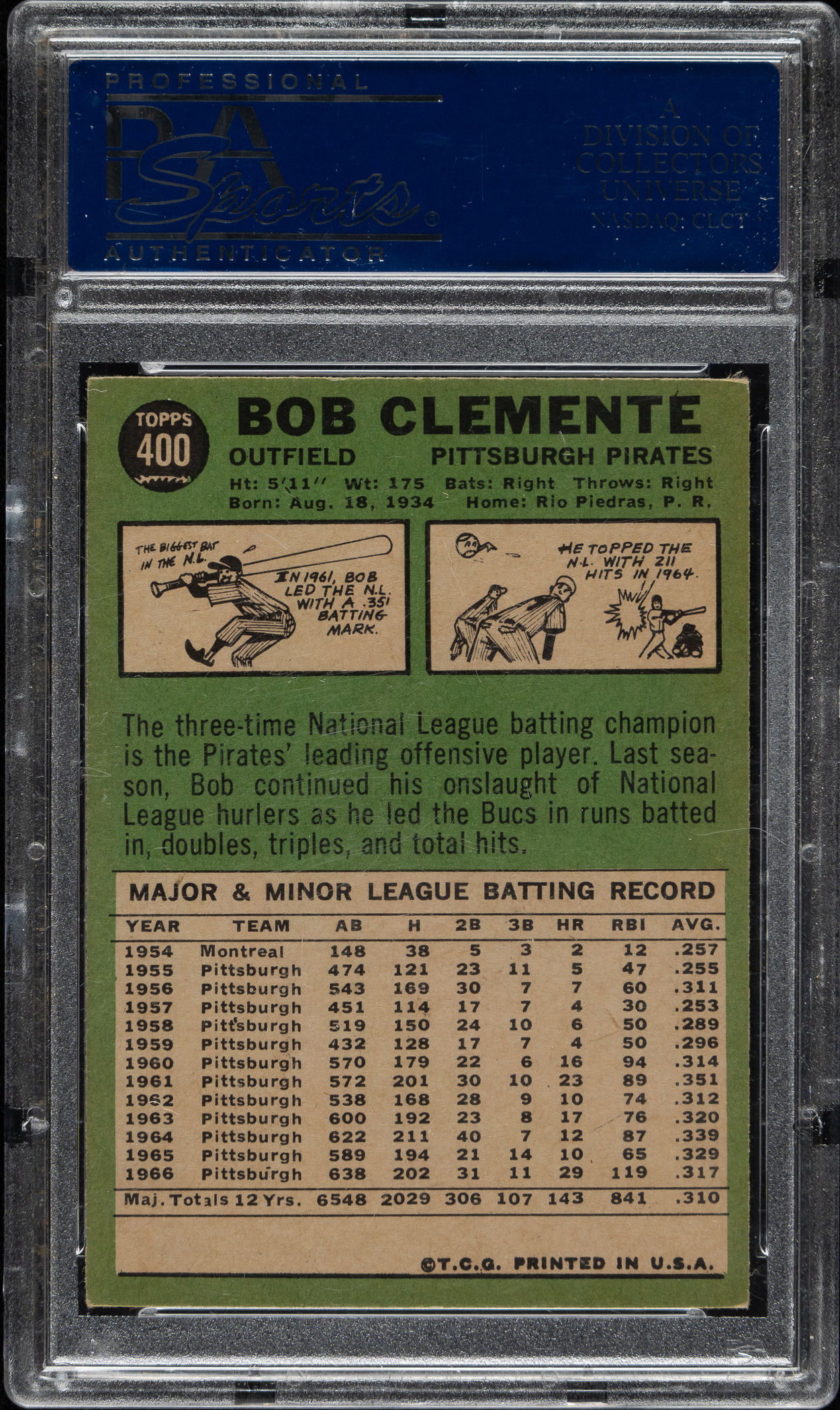 Lot # 2068: 1967 Topps #400 Roberto Clemente PSA VG-EX 4