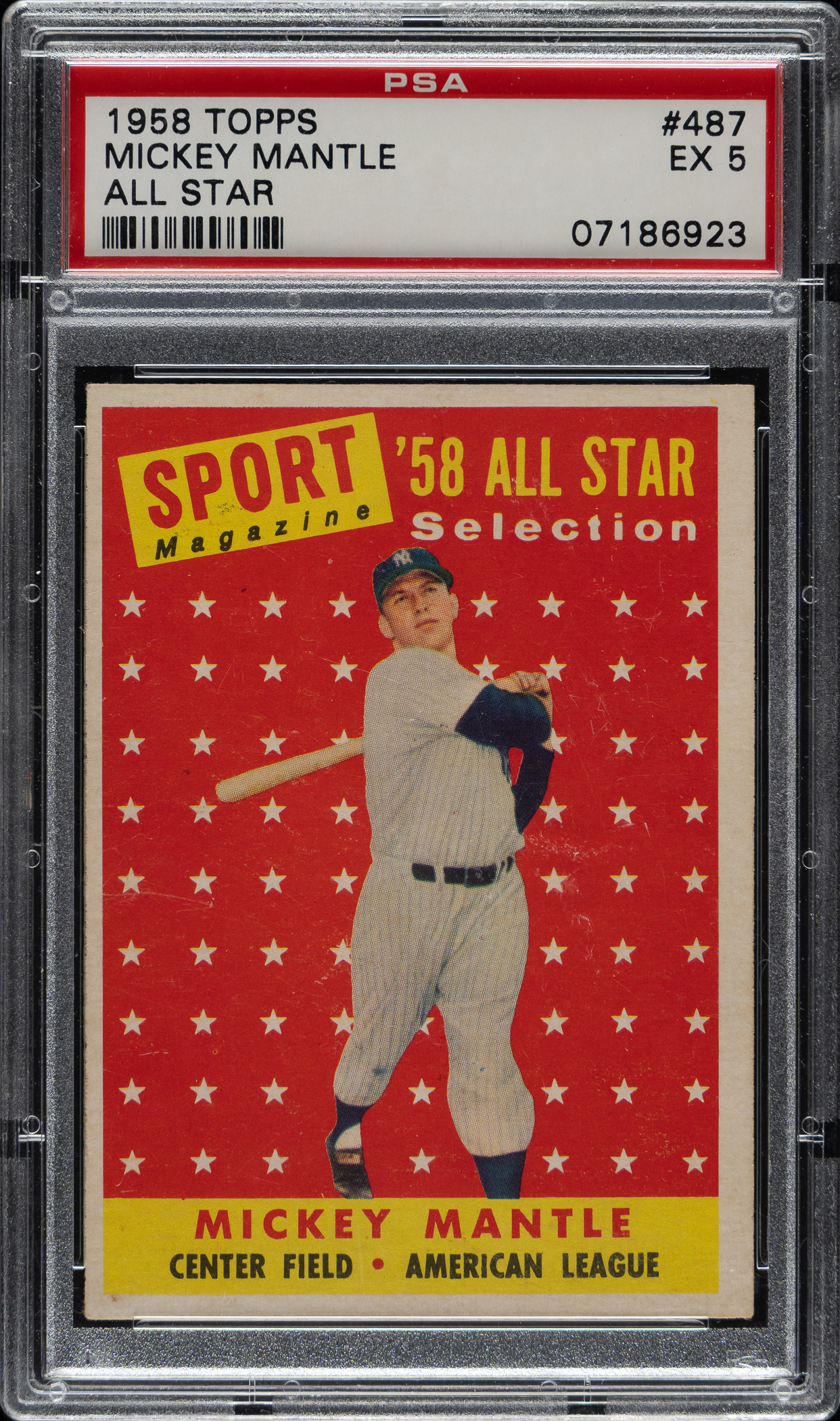 Lot # 1761: 1958 Topps #487 Mickey Mantle All-Star PSA EX 5