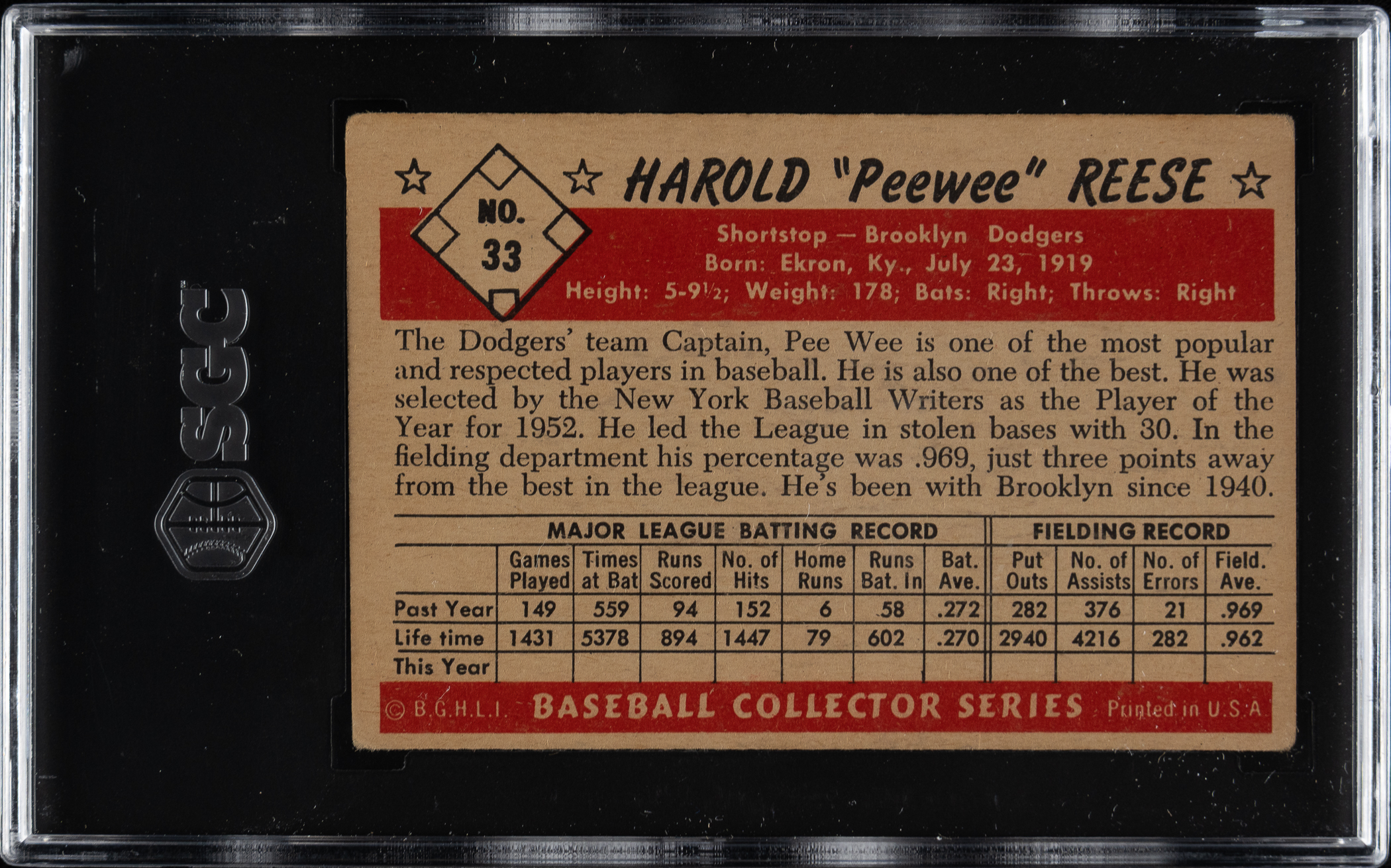 Graded VG 3 by SGC. Brooklyn Dodgers Hall of Famer Pee Wee Reese.