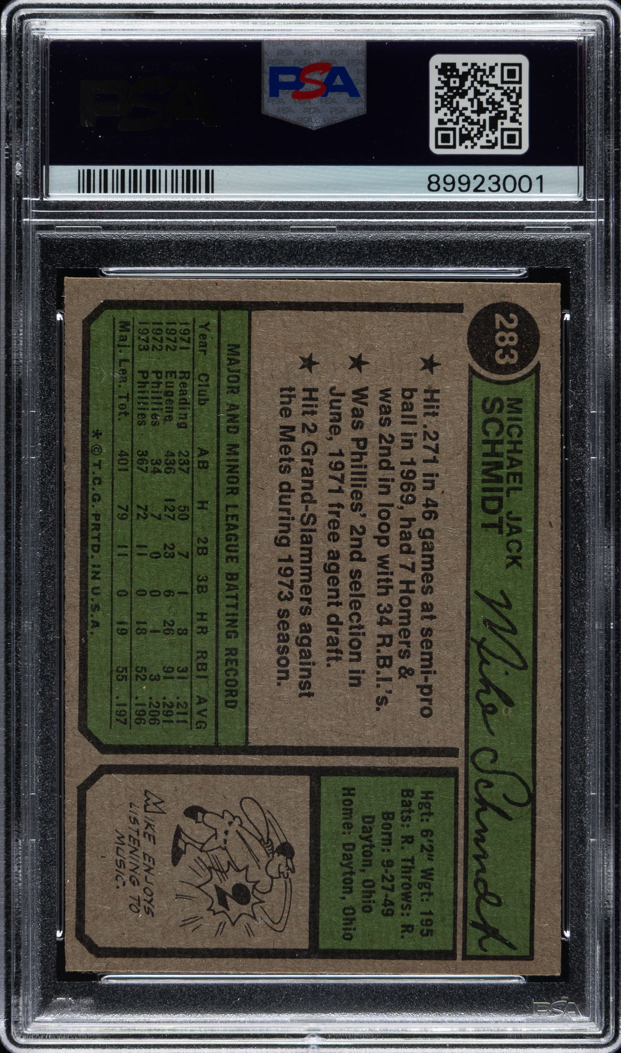 Lot # 2178: 1974 Topps #283 Mike Schmidt PSA NM-MT 8