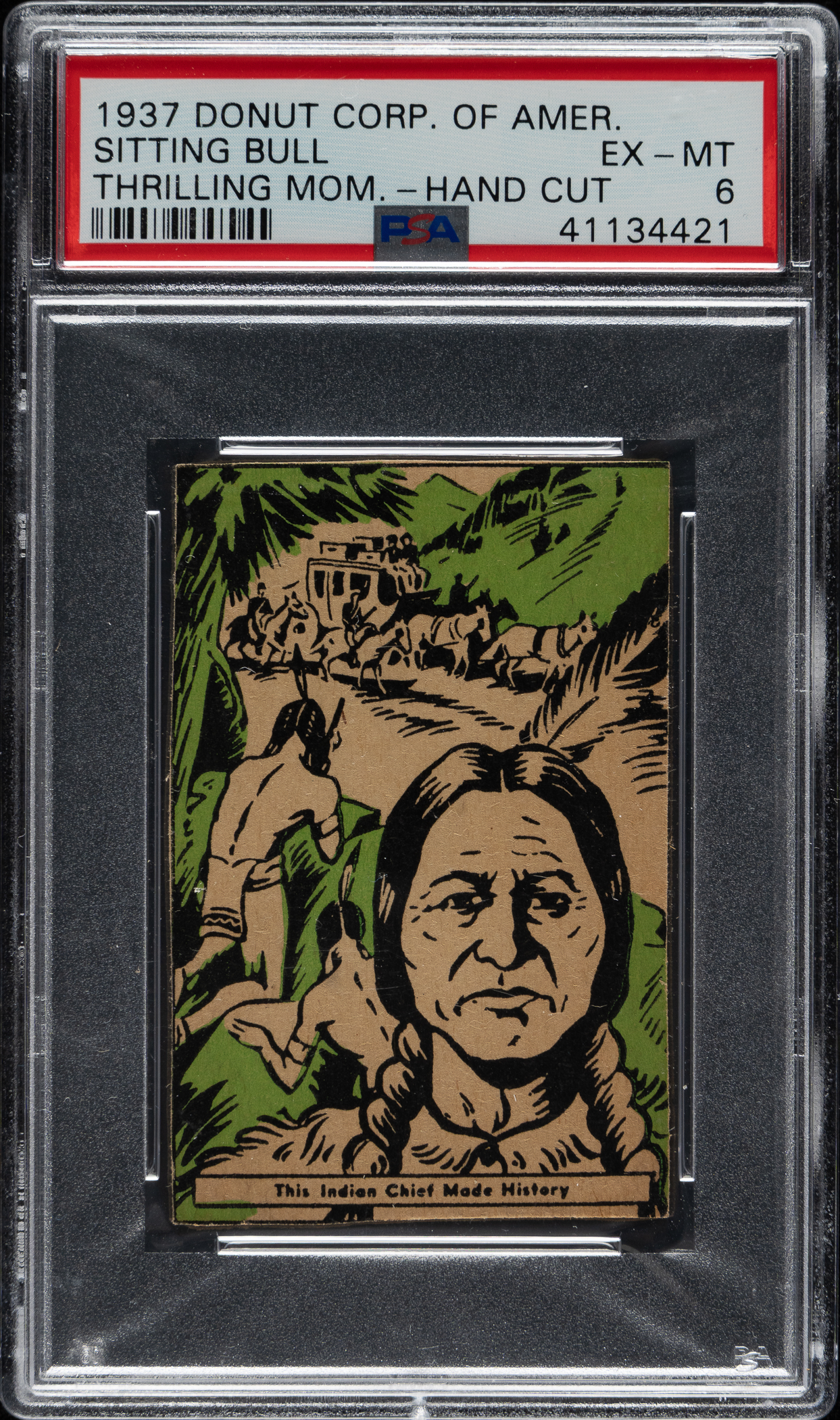 Lot # 3355: 1937 Donut Co. of America "Thrilling Moments" Sitting Bull PSA EX-MT 6