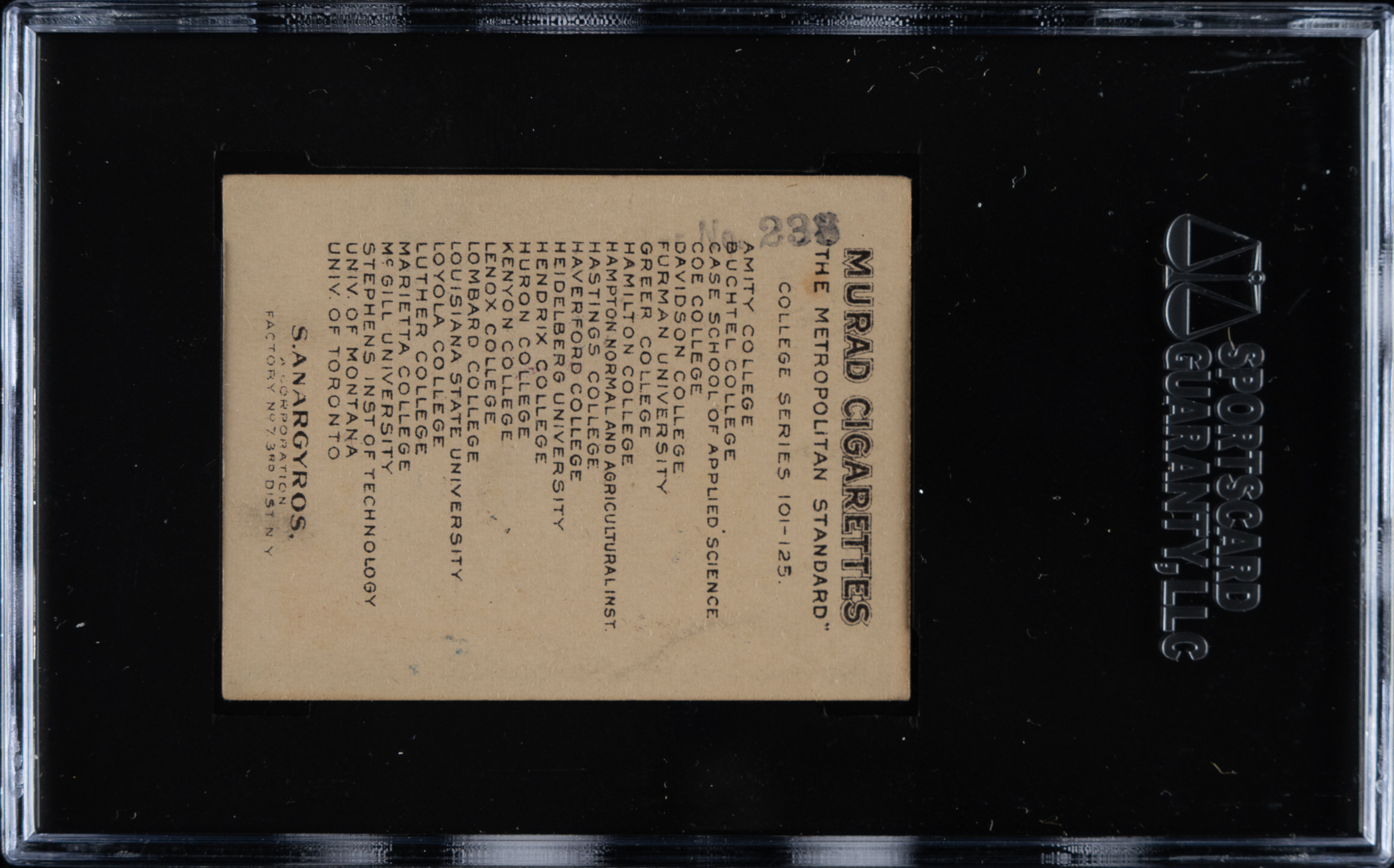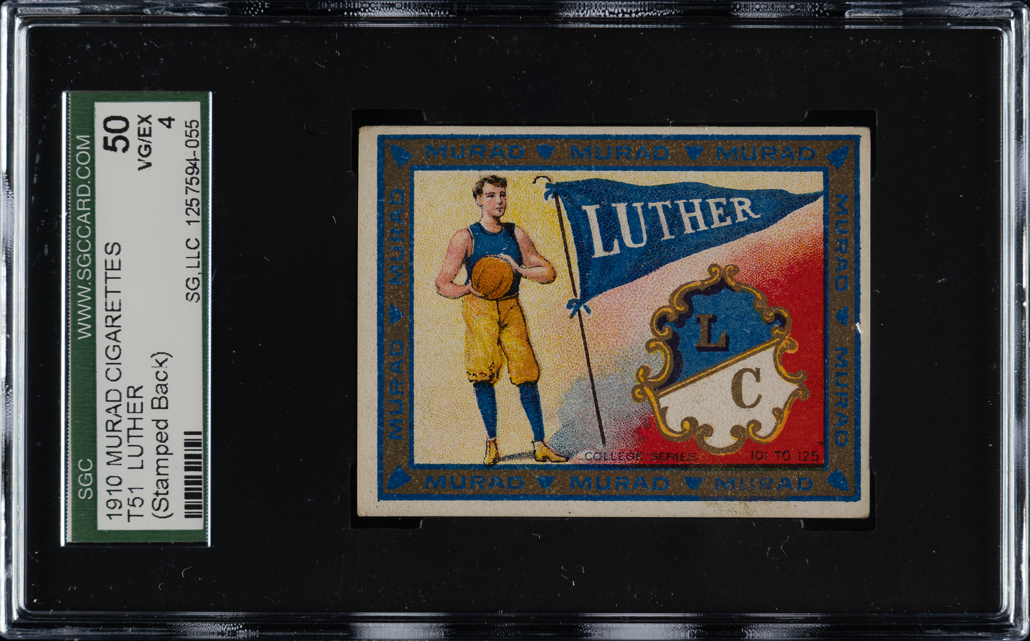 Lot # 3322: 1909-1910 T51 Murad "College Series" Luther Stamped Back SGC VG/EX 50