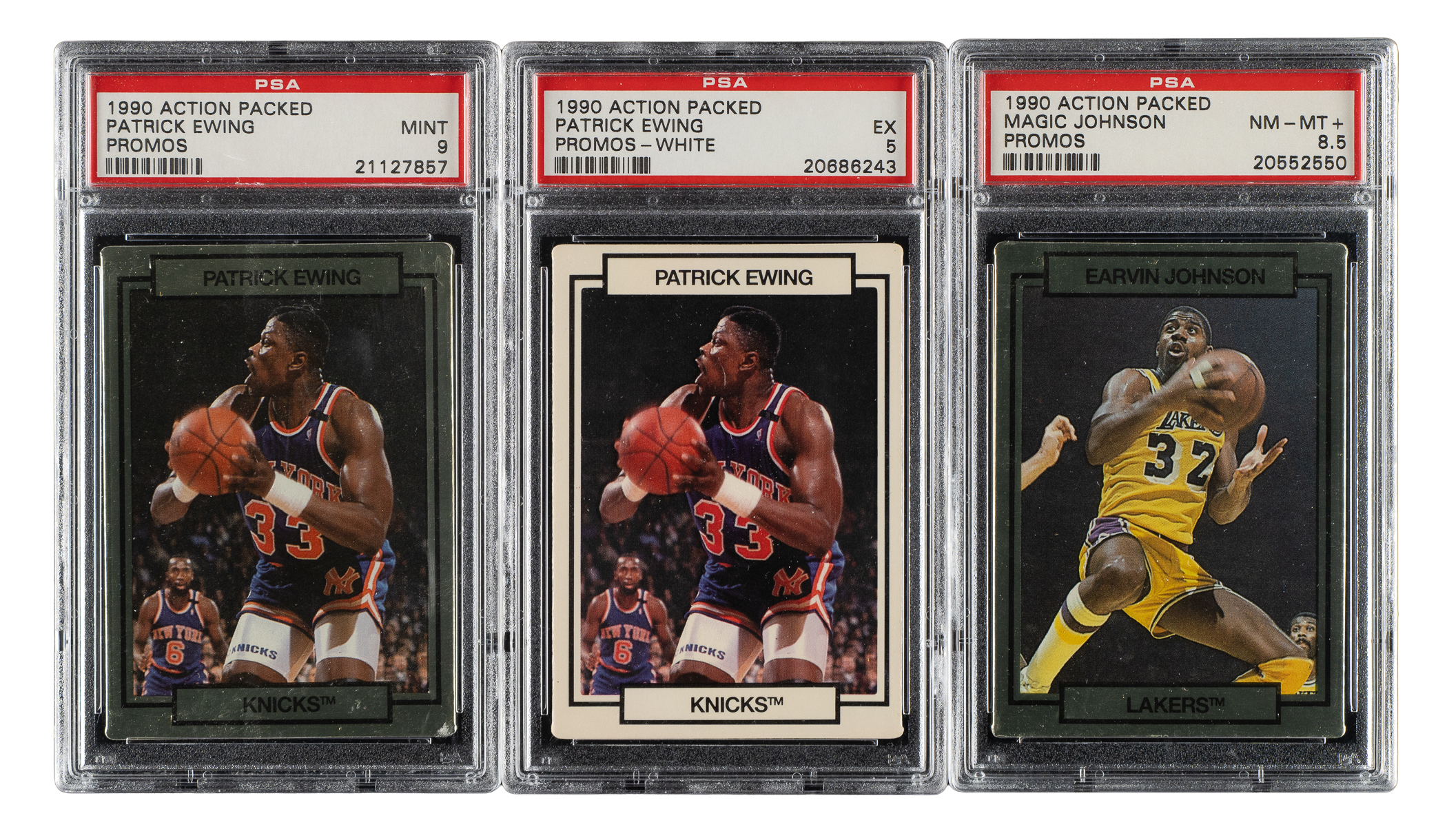 Eclectic collection of fifty-eight complete and near-complete basketball sets, spanning the years 1974 through 2008, highlighted by many Hall of Famers and stars, including Michael Jordan, Larry Bird, Kareem Abdul-Jabbar, and Kobe Bryant. This is a fascinating group of unusual vintage cards, primarily composed of overlooked "oddball" issues, with many interesting highlights. Condition is 62% ranging from Nr/Mt to Mint, 20% Ex to Ex-Mt, and 18% Vg to Vg-Ex (including a few lesser) This collection consists of the following: 1) 1974 Fleer/Laughlin "The Shots" Complete Set (21): Ranging from Vg to Ex (averaging Vg-Ex), with one Gd and one Pr. 2) 1975-1976 Linnett Portraits Boston Celtics Green Border Complete Set (3): Havlicek (Vg-Ex+), Cowens (Vg-Ex), and White (Ex). 3) 1975-1976 McDonalds Philadelphia 76ers Standups Complete Set (6): Keys: Collins, Cunningham, and McGinnis. 4) 1976-1977 Phoenix Suns Complete Set (12): Key: Westphal (Ex-Mt). 5) 1977-1978 Dell Flipbooks Complete Set (6): Ex overall. Includes the following: Abdul-Jabbar, Cowens, Erving, Maravich, Thompson, and Walton. 6) 1977-1978 Humpty Dumpty Phoenix Suns Discs Complete Set (12): Key: Westphal (Mint). 7) 1978-1979 Foodtown Kentucky Wildcats Complete Set (22). 8) 1979-1980 Foodtown Kentucky Wildcats Complete Set (22). 9) 1979-1980 Alta-Dena Los Angeles Lakers/Kings Complete Set (8): Key: Abdul-Jabbar (Nr/Mt-Mt). 10) 1979-1980 San Antonio Spurs Police Complete Set (15): Key: Gervin (Nr/Mt-Mt). 11) 1979-1980 Spic and Span Milwaukee Bucks Complete Set (12). 12) 1980-1981 Pepsi Phoenix Suns Complete Set (12): All twelve cards are on original panels with contest entry instructions. 13) 1980-1981 TCMA CBA Complete Set (45). 14) 1981 TCMA (NBA) Complete Set (44): Keys: #3 Mikan, 16 Russell, 17 Robertson, 30 Frazier, 32 West, 41 Cousy, and 44 Chamberlain. 15) 1982-1983 Giant Service Phoenix Suns Complete Set (3). 16) 1983-1984 Seattle SuperSonics Police Complete Set (16): Keys: Sikma and Wilkens (Coach). 17) 1985-1986 JMS Near-Complete Set (22/27): Missing the following five cards for completion: #1, 4 Barkley, 5 Erving, 12 Parish, and 24 Johnson. Keys: #2 M. Malone, 10 Walton, 14 Bird (Nr/Mt-Mt), 20 Abdul-Jabbar (Vg+), and 23 Worthy. 18) 1985-1986 Denver Nuggets Police Complete Set (12). 19) 1986-1987 Bank One Indiana Hoosiers All-Time Greats Series I Complete Set (42): Keys: #1 Knight, 2 Bellamy, and 19 McGinnis. 20) 1986-1987 Bank One Indiana Hoosiers All-Time Greats Series II Complete Set (42): Keys: #30 I. Thomas and 37 Knight. 21) 1987-1988 Entenmann's Chicago Bulls Near-Complete Set (11/12): Missing only Jordan for completion. Key: Pippen (Nr/Mt-Mt+). 22) 1987-1988 Entenmann's Chicago Bulls Near-Complete Set (11/12): Missing only Jordan for completion. Key: Pippen (Mint). 23) 1988-1989 Entenmann's Chicago Bulls Complete Set (12): Keys: Jordan (Nr/Mt-Mt+) and Pippen (Nr/Mt-Mt). 24) 1988-1989 Bud Light Dallas Mavericks Complete Set (13). 25) 1988-1989 Big League Cards Bud Light Dallas Mavericks Complete Set (14). 26) 1988-1989 Fleer Old Home Bread Utah Jazz Complete Set (13): All cards are hand cut. Keys: #10 K. Malone and 13 Stockton. 27) 1989 Converse Complete Set (14): Keys: Bird (Mint), Johnson, King, and K. Malone. 28) 1989 Converse Complete Set (14): Keys: Bird, Johnson, King, and K. Malone. 29) 1989-1990 Carl's Jr. Sacramento Kings Complete Set (12): Set offered in three 5-card panels (each with a coupon). Includes Ralph Sampson, Danny Ainge, and Kenny Smith. 30) 1989-1990 Denver Nuggets Police Complete Set (12). 31) 1989-1990 Marine Midland Bank N.Y. Knicks Complete Set (14): Includes Mastercard coupon card. Key: Ewing (Gd-Vg due to small spots of paper loss on reverse). 32) 1990 Costacos Brothers Sports NBA Postcards Near-Complete Set (14/17): Missing the following three cards for completion: Bird, Jordan/home jersey, and Thomas. Keys: Barkley, Johnson, Jordan (Ex), and Malone. 33) 1990 Action Packed Promos Near-Complete Set (3/5): All three cards have been professionally graded by PSA (two holders are scratched). Missing both Jordans for completion. Includes: Ewing (MINT 9), Ewing/white (EX 5), and Johnson (NM-MT+ 8.5). 34) 1990-1991 Kayo Seattle SuperSonics Complete Set (14): Key: #12 Payton (Mint). 35) 1990-1991 McDonald's Jordan "Sports Tips" Complete Set (8). 36) 1990-1991 Fleer Franz Portland Trail Blazers Near-Complete Set (10/20) Plus Four Duplicates: Set does not have a #15 and Kersey is unnumbered. Missing the following ten cards for completion: #3, 4, 9, 10, 11, 13 Drexler, 14, 16 Petrovic, 19, and 20. Includes four duplicates: #1, two 7 Adelman, and 17. Key: #6 Walton. 37) 1990-1991 Seattle SuperSonics Smokey Complete Set (16): Key: Payton (Ex). 38) 1990-1991 Safeway Sacramento Kings Complete Set (12): Includes three Safeway coupons (Coca-Cola). 39) 1990-1991 Phoenix Suns Smokey Complete Set (5). 40) 1991 Wooden Award Winners Complete Set (21): Includes original album and certification card. Keys: #9 Bird and 13 Jordan. 41) 1991-1992 SkyBox Canadian Minis Near-Complete Set (48/50): Missing #2 Bird and 3 McHale for completion. Keys: #7 Jordan, 8 Pippen, 16 Rodman, 19 Olajuwon, 21 Miller, 25 Earvin Johnson, 35 Barkley, 46 K. Malone, and 47 Stockton. 42) 1991-1992 Skybox Mark and See Minis Team USA Near-Complete Set (7/10): Missing the following three cards for completion: #531 Bird, 533 Magic, and 536 Mullin. Key: #534 Jordan (Nr/Mt-Mt). 43) 1992-1993 Burger King Charlotte Hornets Standups Complete Set (12) Including All Four Original Envelopes: Includes all four original envelopes (set was distributed in four 3-card series). Key: Mourning. 44) 1992-1993 Arizona Republic/Gazette Phoenix Suns 25th Anniversary Near-Complete Set (24/26): Missing two cards for completion (Davis and Westphal). Keys: Barkley and Goodrich. 45) 1992-1993 Center Court Hall of Fame Art Card Complete Set (53): Keys: #1 Mikan, 10 Frazier, 14 Robertson, 50 Reed, and PD1 Mikan "Player of the Decade the 40's." 46) 1993 Action Packed Hall of