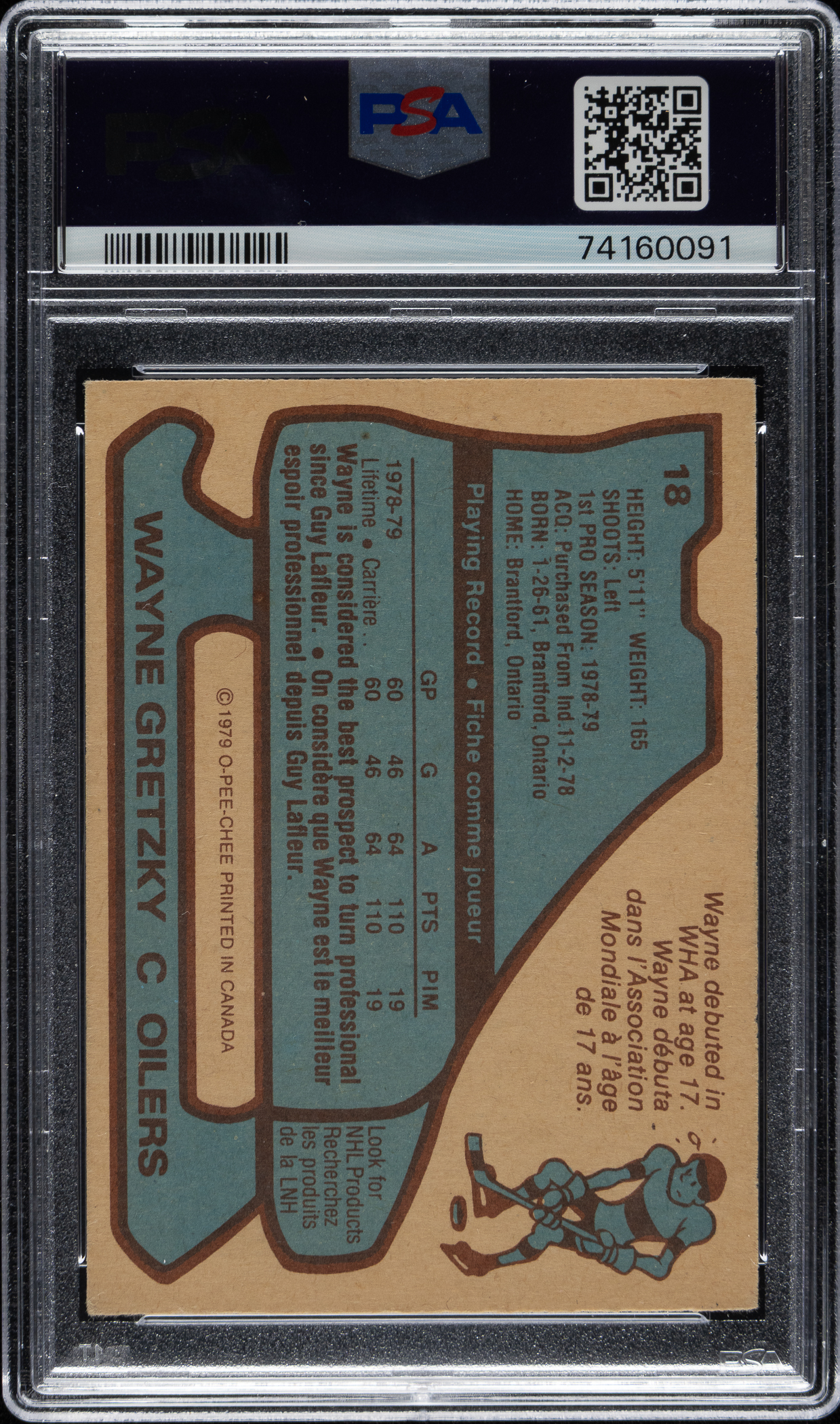 Graded EX-MT 6 by PSA. Edmonton Oilers hockey Hall of Famer Wayne Gretzky.