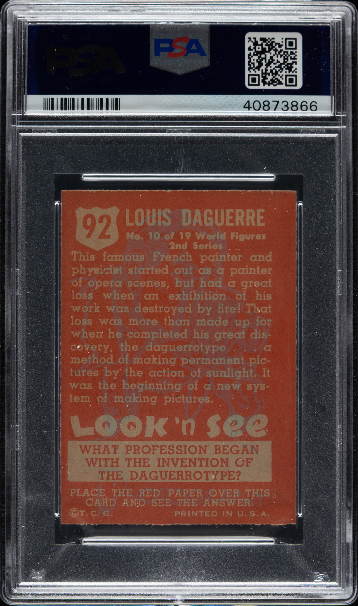 Lot # 3441: 1952 Topps "Look 'n See" #92 Louis Daguerre PSA NM-MT 8