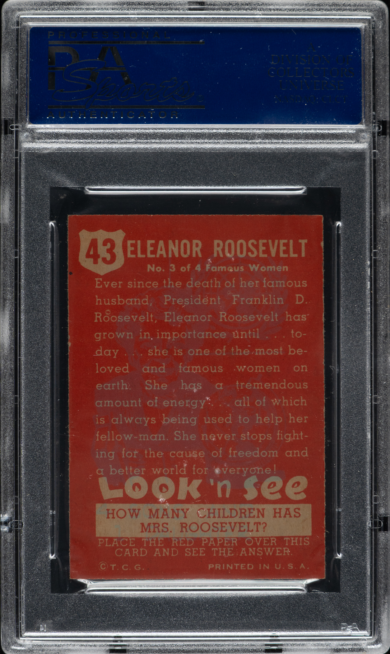 Lot # 3409: 1952 Topps "Look 'n See" #43 Eleanor Roosevelt PSA NM-MT 8
