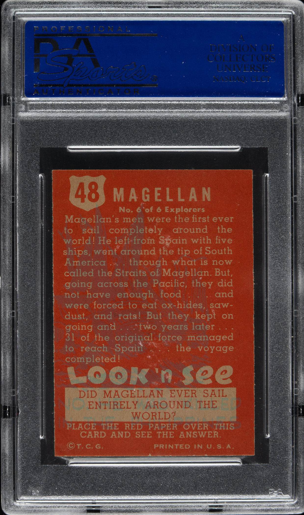 Lot # 3411: 1952 Topps "Look 'n See" #48 Magellan PSA NM-MT 8