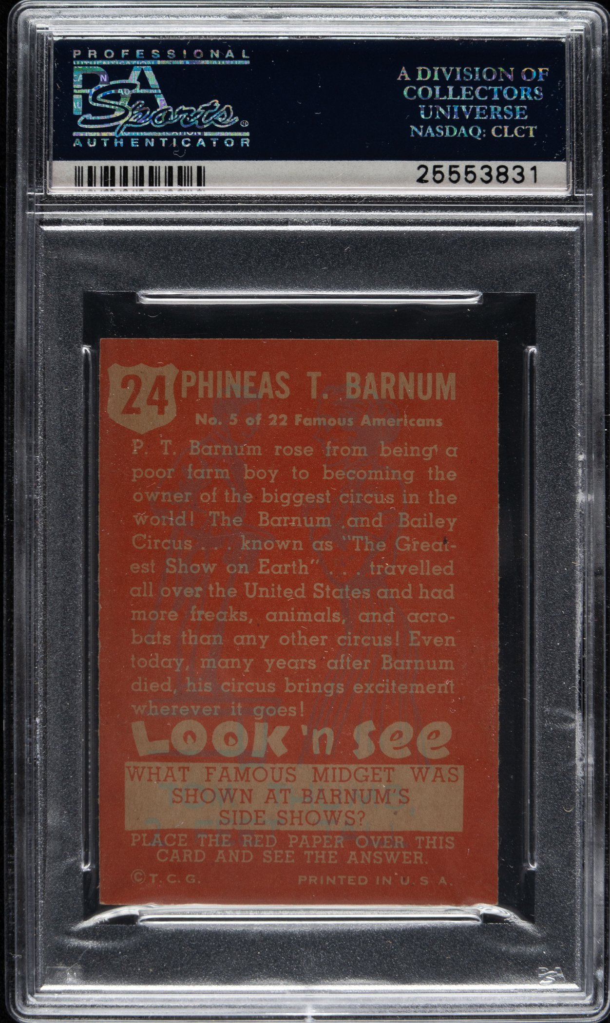 Lot # 3396: 1952 Topps "Look 'n See" #24 Phineas T. Barnum PSA NM-MT 8