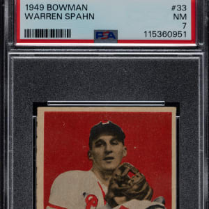 Graded NM 7 by PSA. Boston Braves Hall of Famer Warren Spahn.