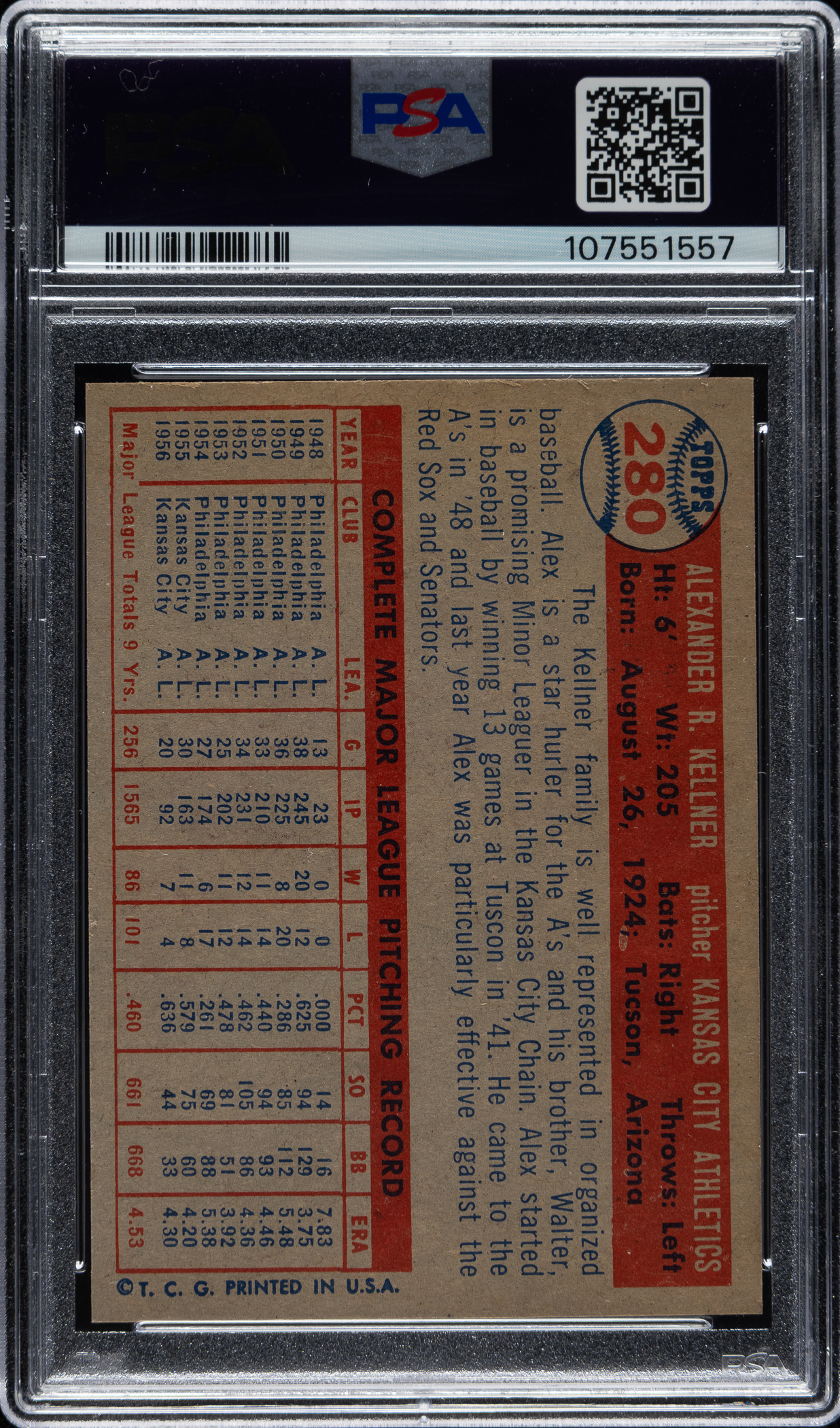 Graded NM-MT+ 8.5 by PSA. Kansas City Athletics. Only three examples graded higher by PSA.