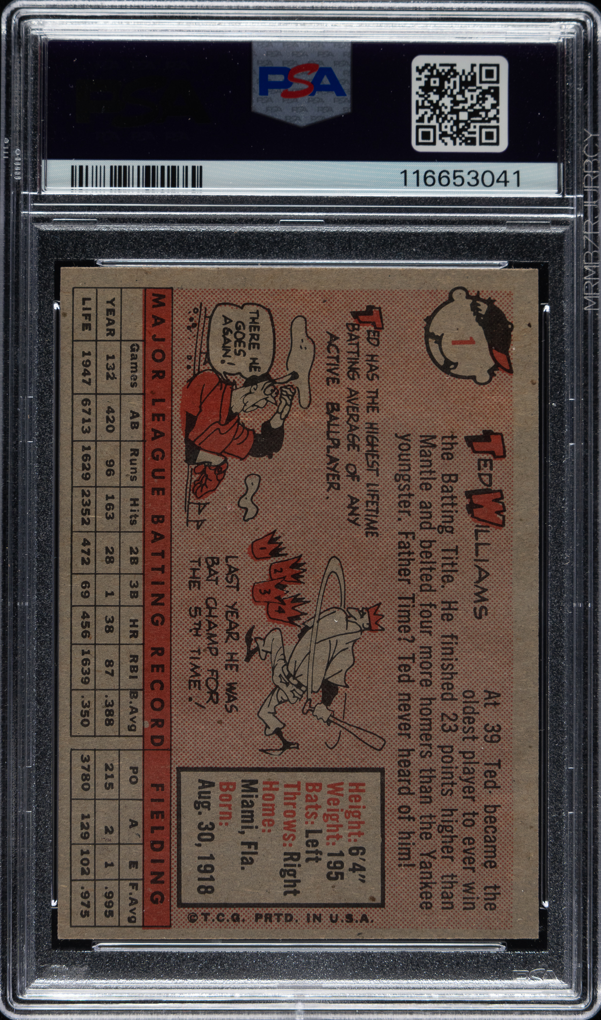 Graded NM 7 by PSA. Boston Red Sox Hall of Famer Ted Williams.
