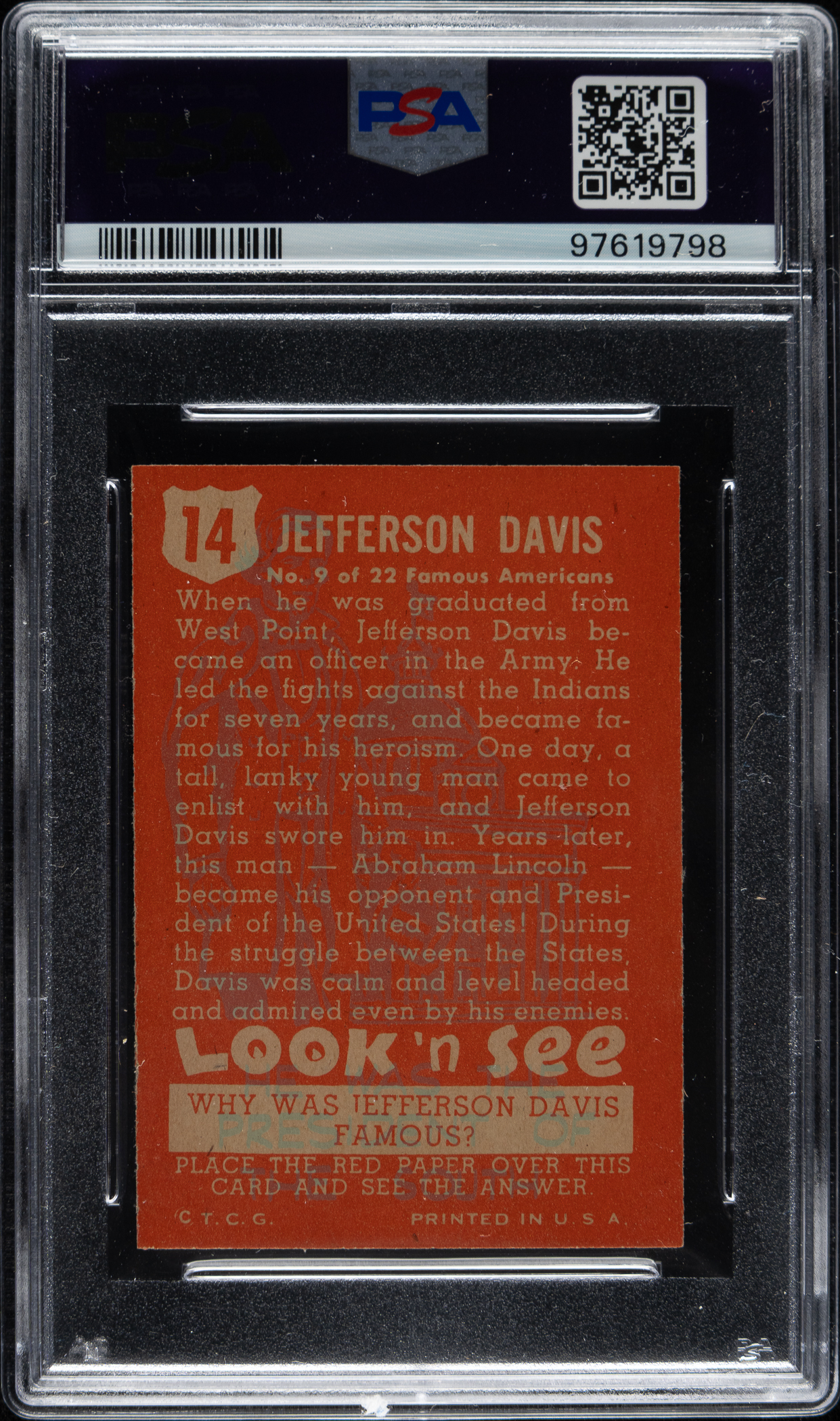 Lot # 3389: 1952 Topps "Look 'n See" #14 Jefferson Davis PSA NM-MT 8