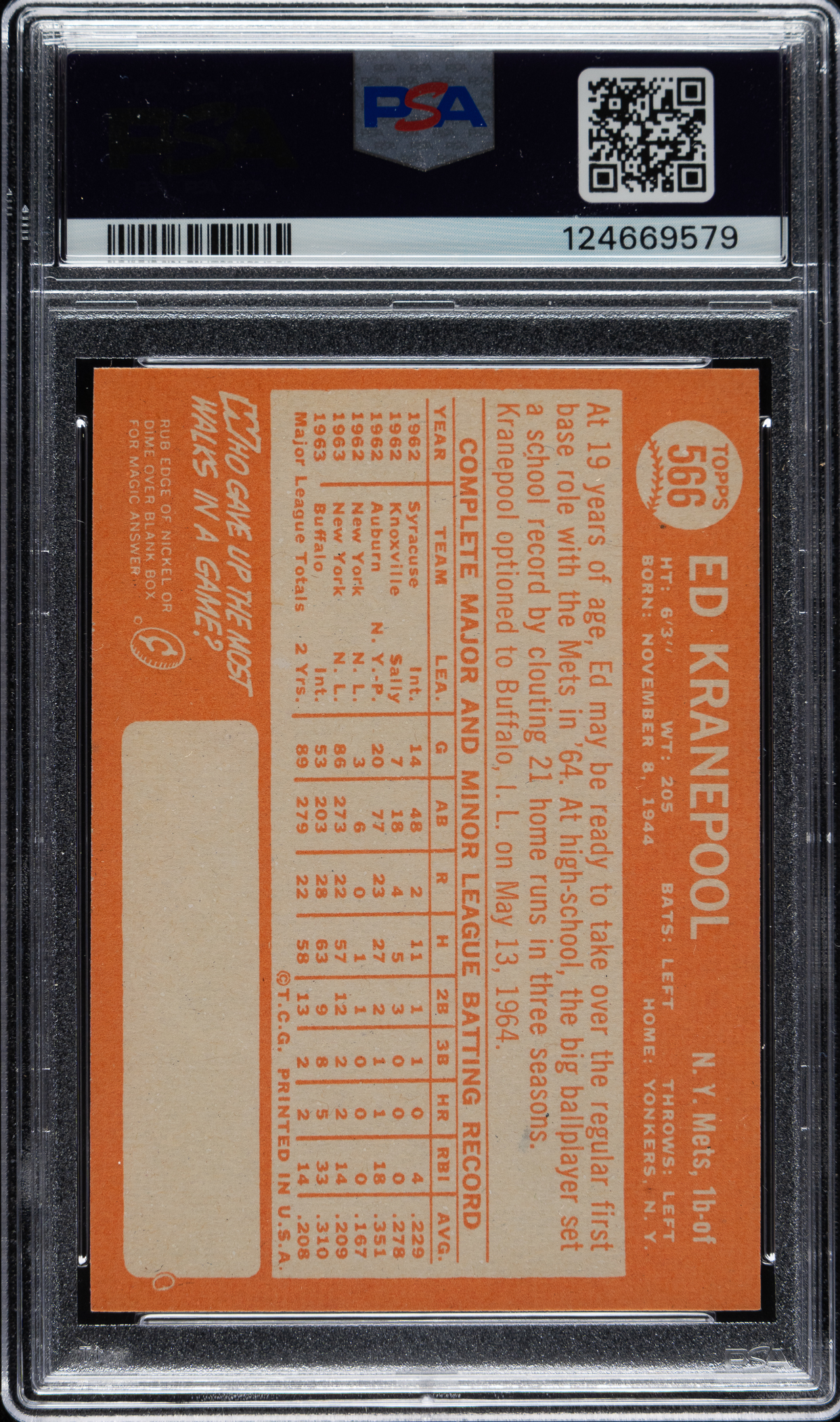 Graded GEM MINT 10 by PSA. New York Mets. One of ten examples graded at this lofty level.