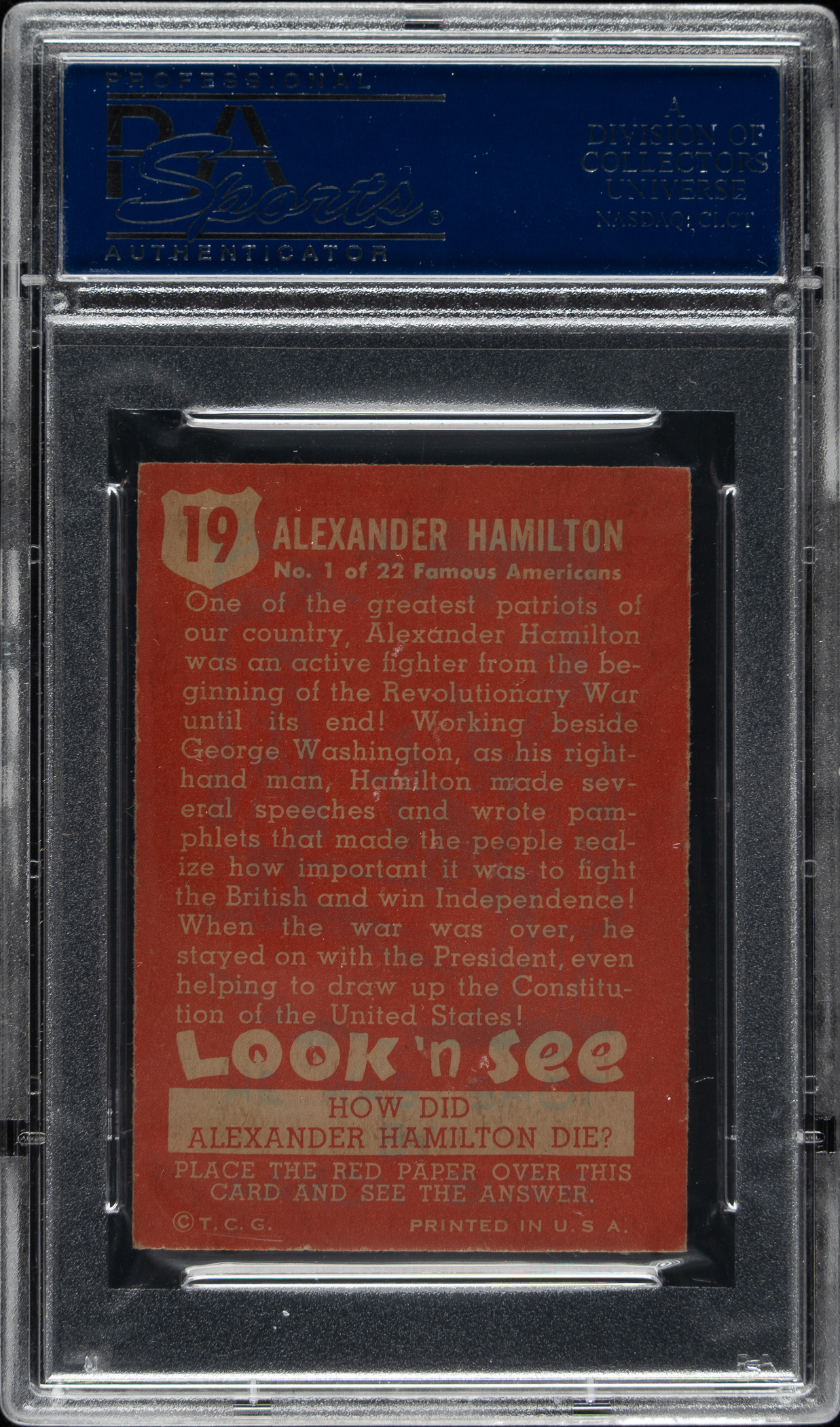 Lot # 2838: 1952 Topps "Look 'n See" #19 Alexander Hamilton PSA NM-MT 8