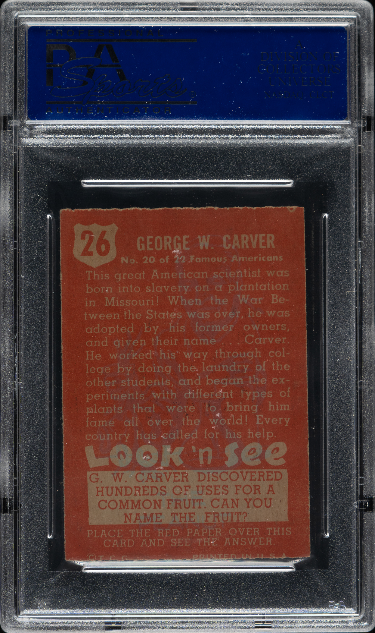 Lot # 2841: 1952 Topps "Look 'n See" #26 Washington Carver PSA NM-MT 8